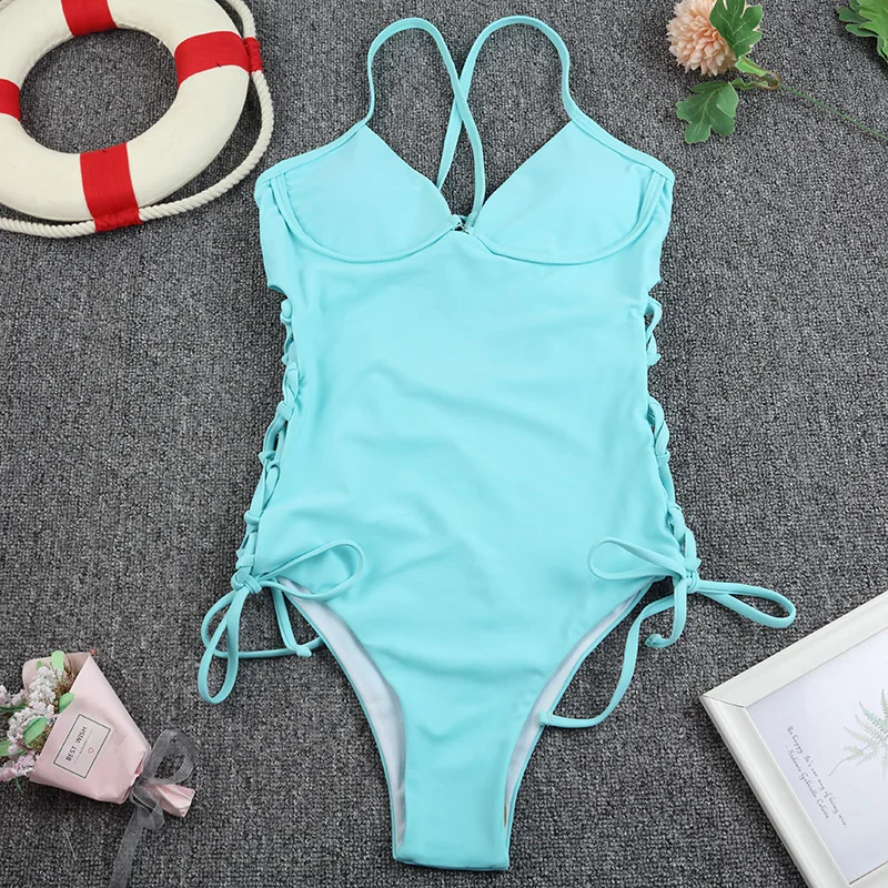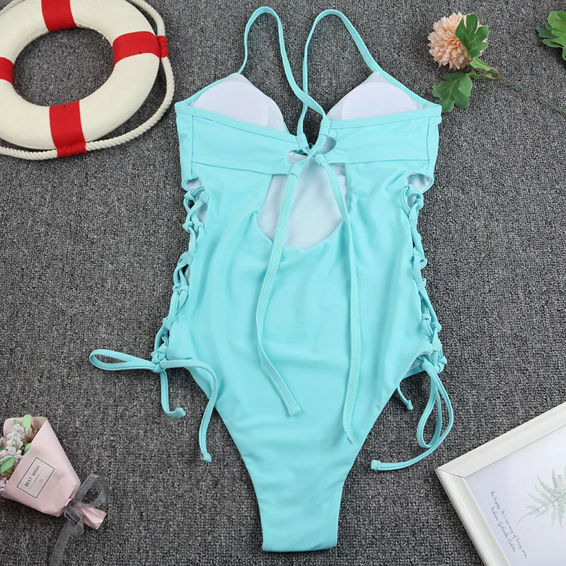 Новинка 2022, женский слитный купальник, Женский бандажный боди с пуш-ап, однотонный монокини с вырезами, купальные костюмы с подкладкой