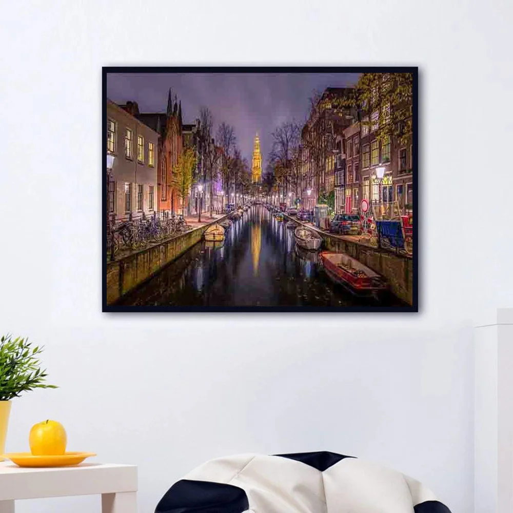 Название алмазной картины: AZQSD 5D Diy Алмазная вышивка городской пейзаж, картина, выложенная алмазами улица мост Вышивка крестом Стразы мозаика украшение для дома