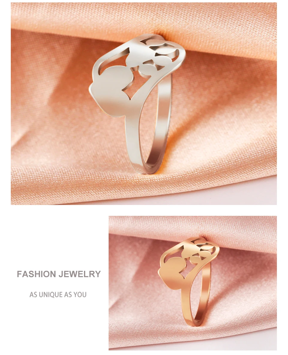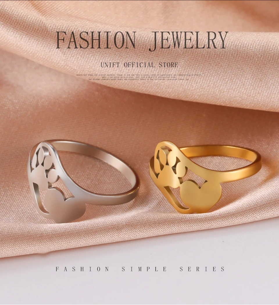 Unift с милой собачкой кольцо в виде лапы сердце Нержавеющаясталь Для женщин с изображением котенка для девочек; Кольцо в виде лапы s Ювелирное Украшение с изображением животных, Юбилей вечерние подарок для собаки любимчика для влюбленных