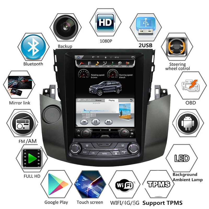 Автомагнитола на Android 10 для Toyota RAV4, автомобильный DVD-плеер, мультимедийная система, стерео, GPS, Авторадио, навигация, вертикальный экран 10,4 дюйма