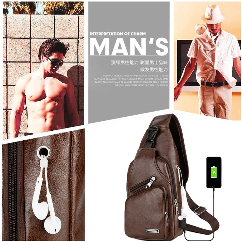 Мужская Наплечная Сумка-слинг, холщовая Спортивная Сумочка через плечо с зарядкой, кожаный нагрудной мешок в английском стиле