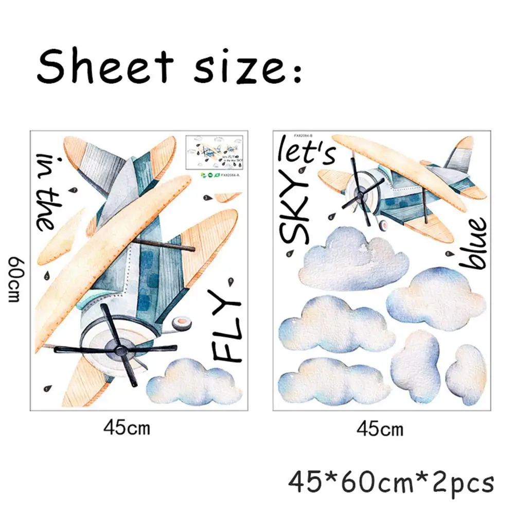 Мультяшные акварельные самолеты облако Декоративные наклейки для де...