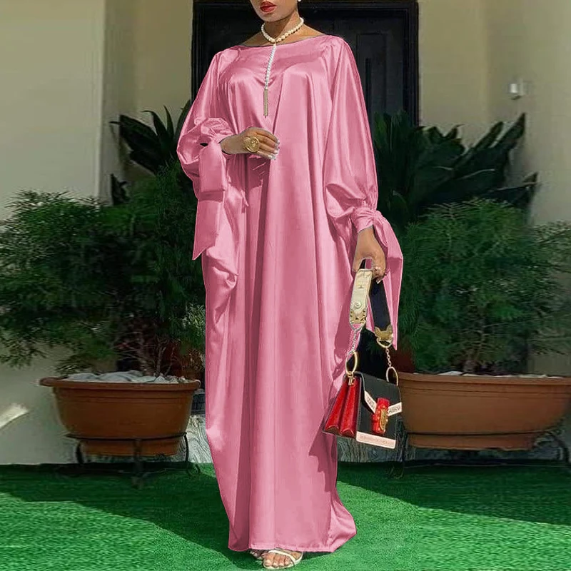 Style 1Elegant Ladies Long Sleeve Slik Party Dress Robe
