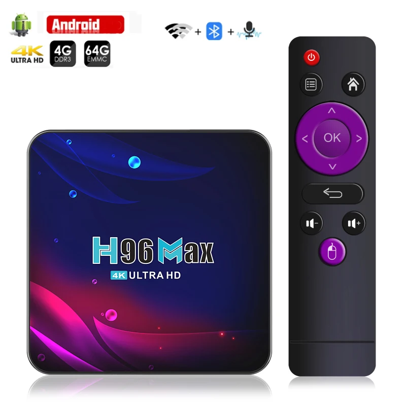 Приставка Смарт-ТВ H96MAX, ТВ-приставка с поддержкой Wi-Fi, Bluetooth, Android 10, 4G, 64 ГБ, 4 Гб, 32 ГБ, 4K, голосовой медиаплеер, 2 ГБ16 ГБ