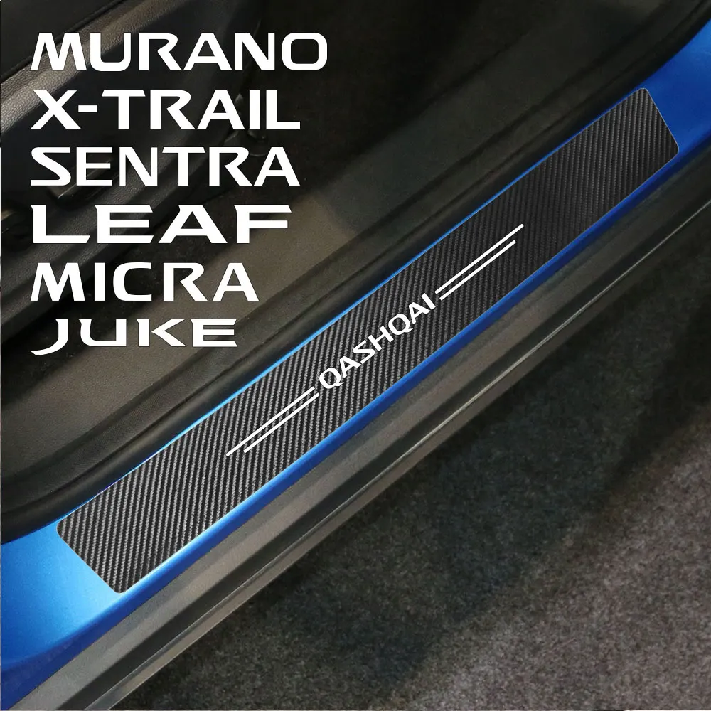 Накладки на пороги автомобиля, 4 шт., наклейки из углеродистой кожи для Nissan Altima Juke, Leaf Murano Note, Qashqai, Sylphy, X-Trail, автомобильные аксессуары
