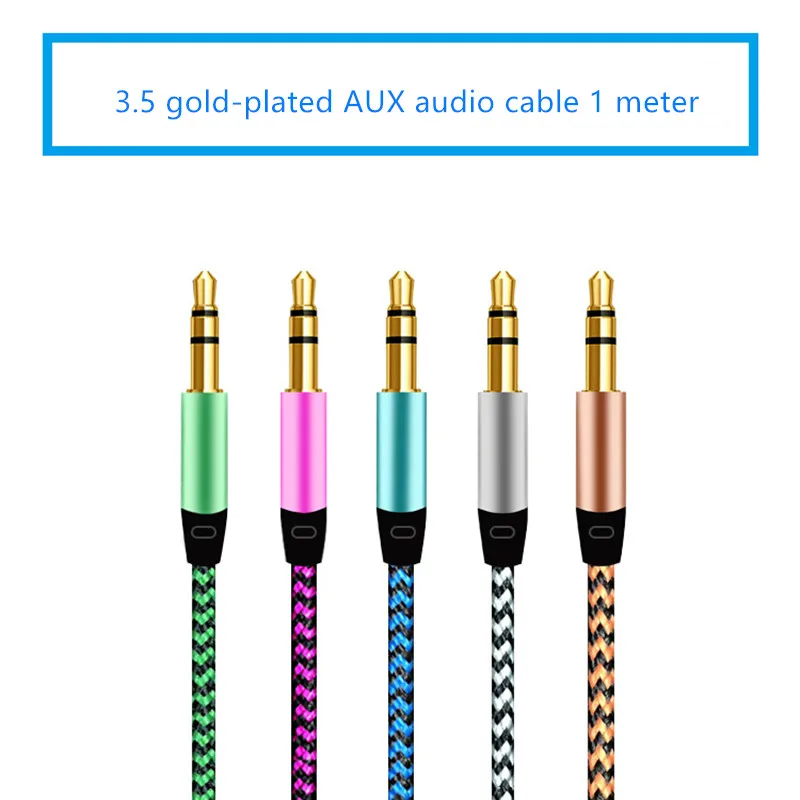 1 шт. 1 м цветной нейлоновый разъем Aux-кабель 3,5 мм до 3,5 мм штекер аудио кабель штекер-штекер