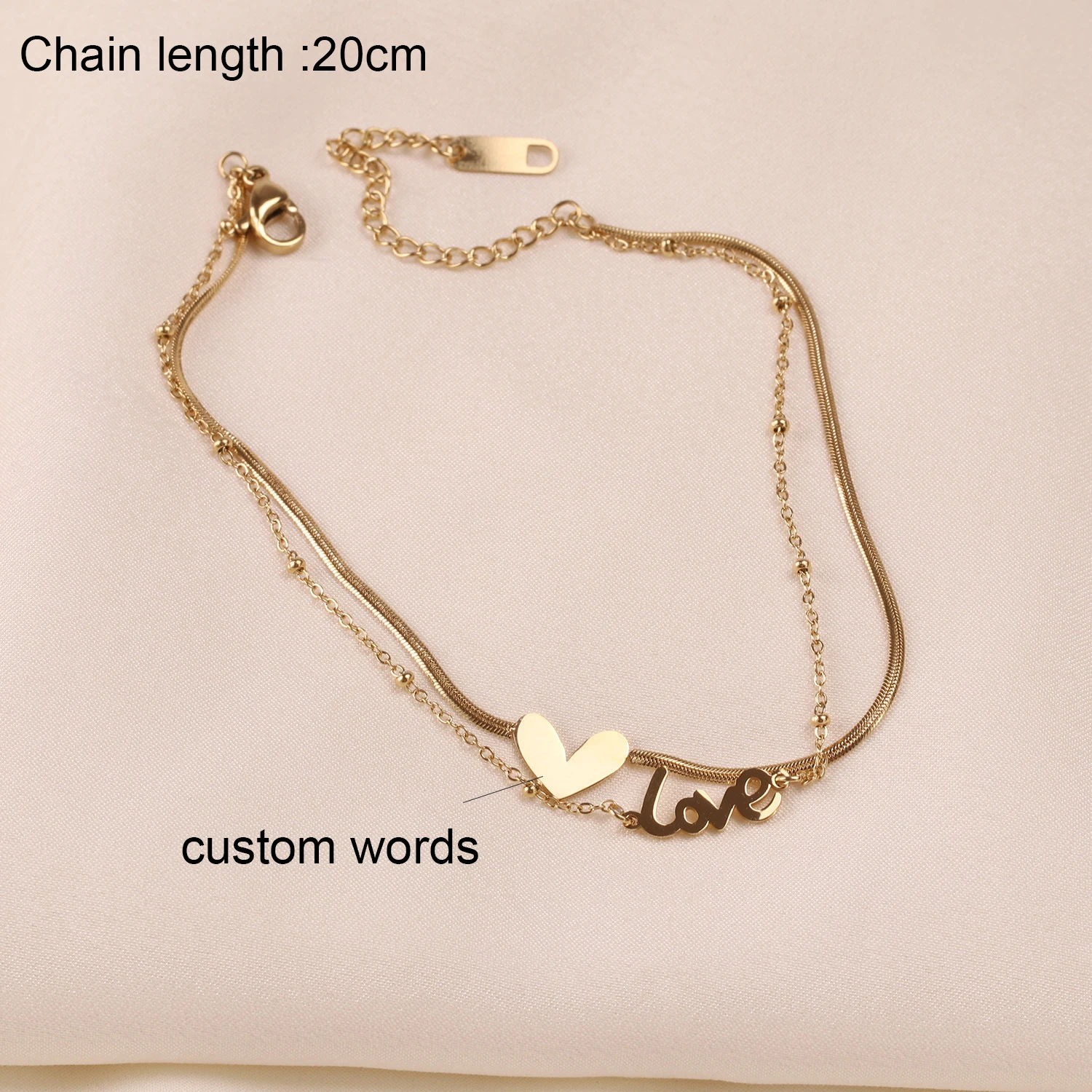 Браслет-цепочка с гравировкой букв и именем, из нержавеющей стали
