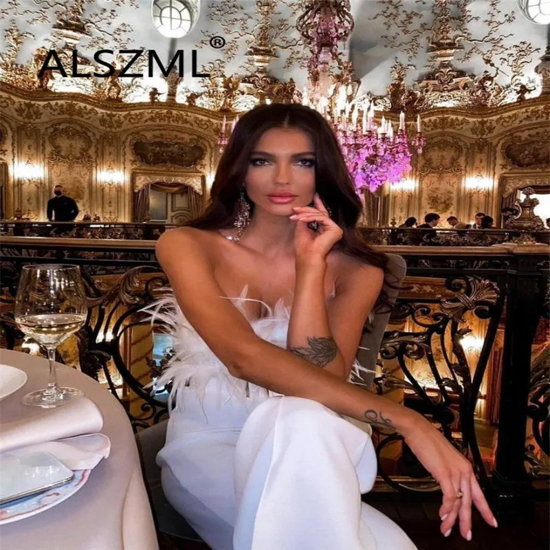 Элегантный белый комбинезон с перьями, комбинезон для активного отдыха, облегающий эластичный цельный комбинезон, наряды