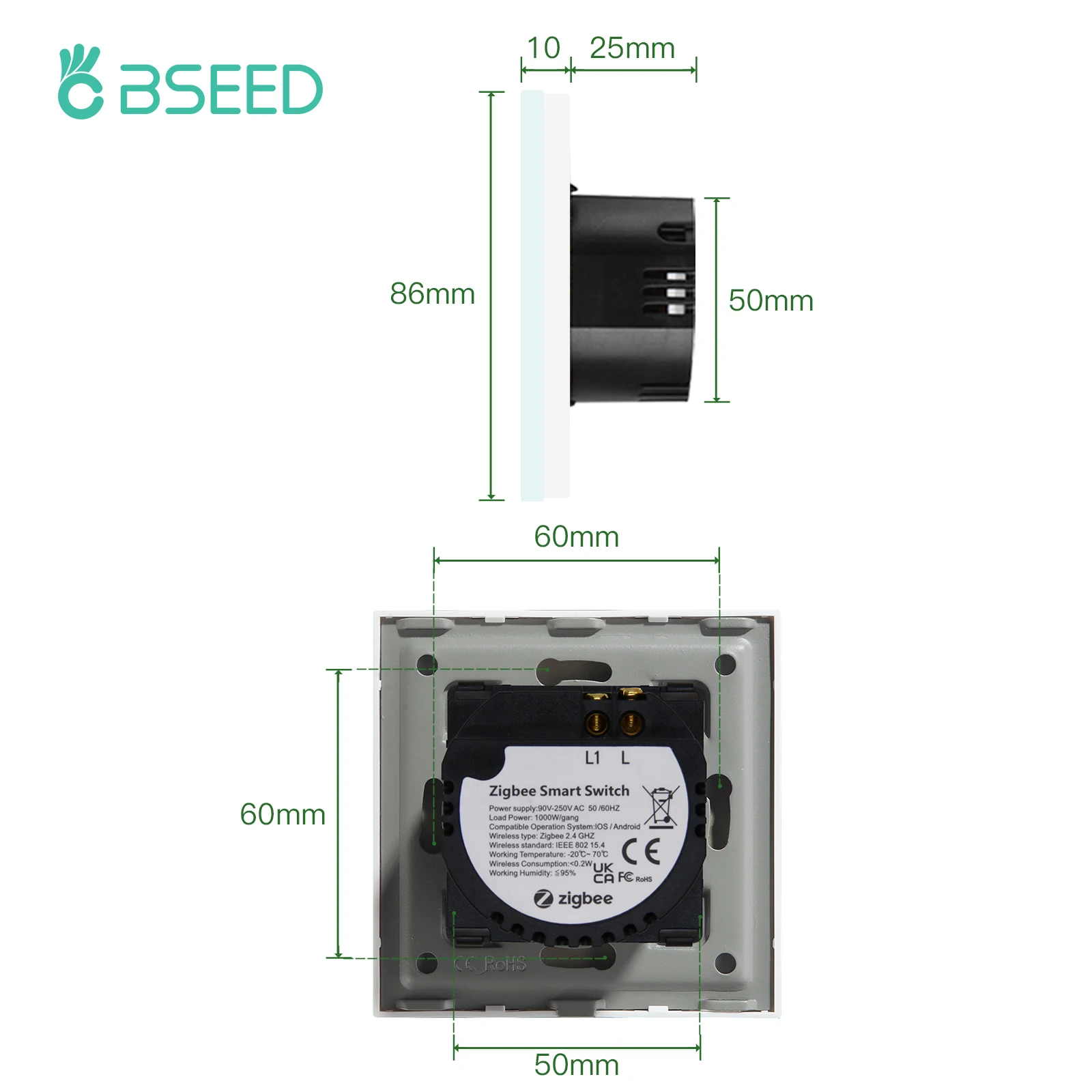 BSEED Zigbee настенный светильник сенсорный выключатель Экран Переключатель 1/2/3 приложение Smart Life Google Alexa без нейтральный провод приложение Tuya Управление