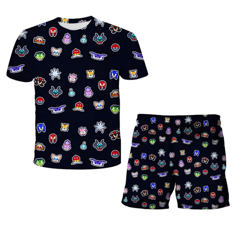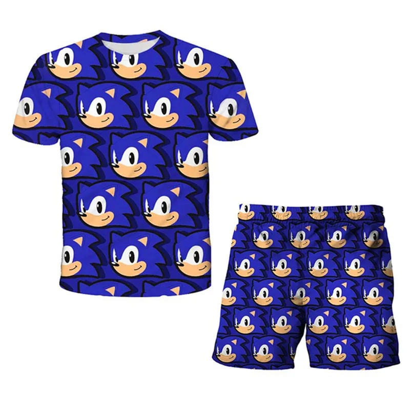 Летняя детская одежда 2021, костюмы с 3D-принтом Sonic, верх и шорт...