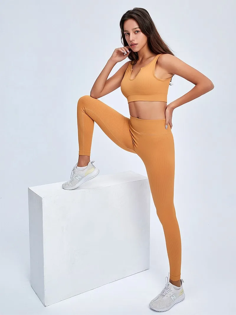 Женские Бесшовные костюмы для йоги, комплект из 2 предметов, эластичная рубашка для фитнеса, леггинсы, одежда для тренажерного зала, тренировочные спортивные комплекты с эффектом пуш-ап, тренировочные костюмы