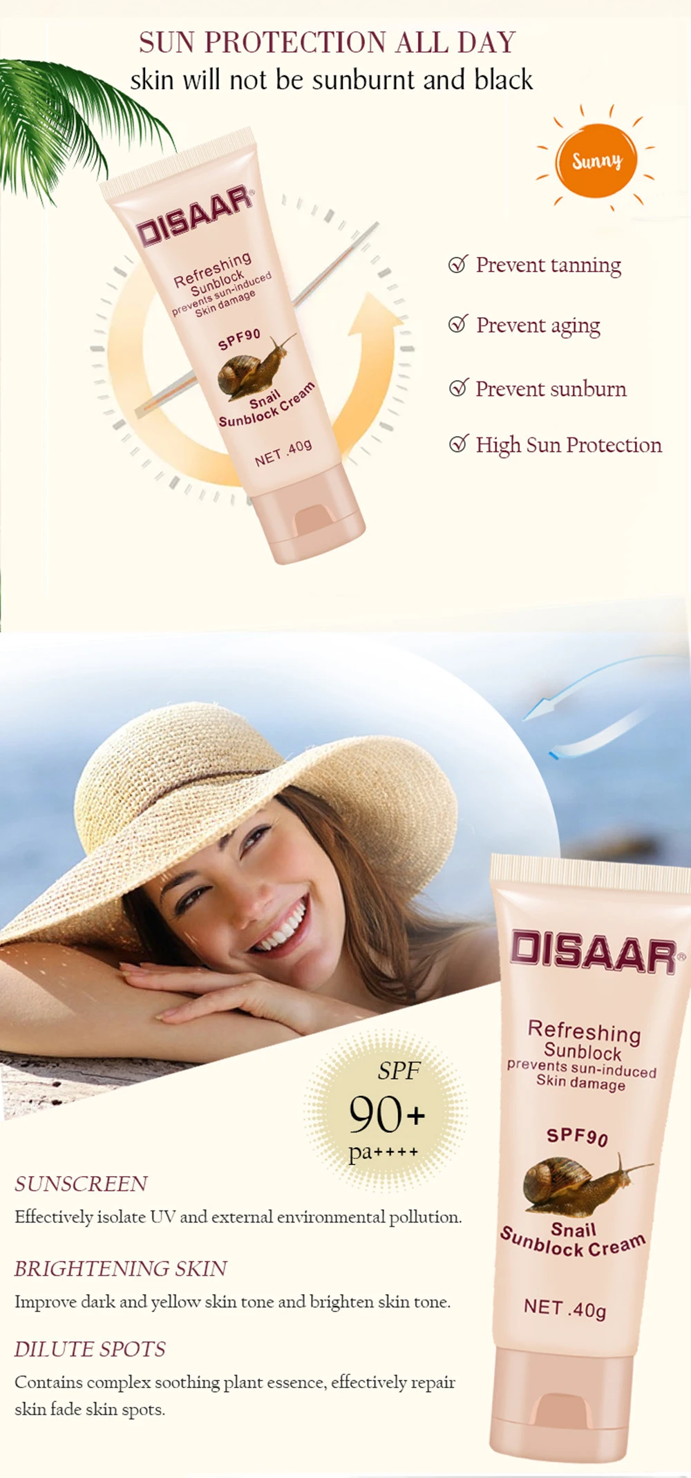 Солнцезащитный крем с коллагеном, улиткой, SPF90, UVA UVB, защита от солнца