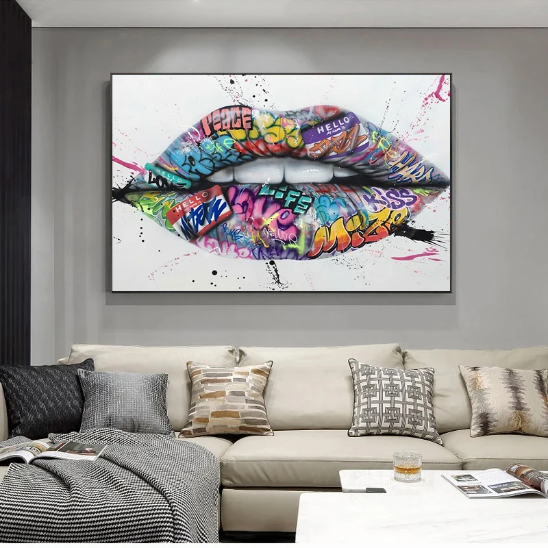 Абстрактное настенное Искусство граффити губы холст живопись современный популярный плакат внутреннее украшение для дома роспись (без рамки)