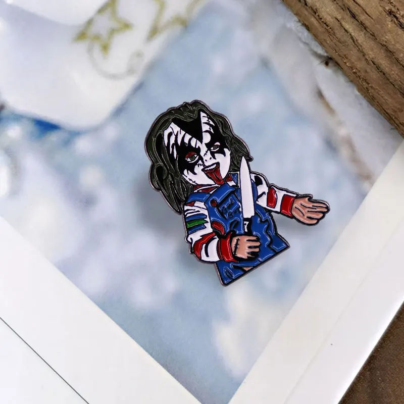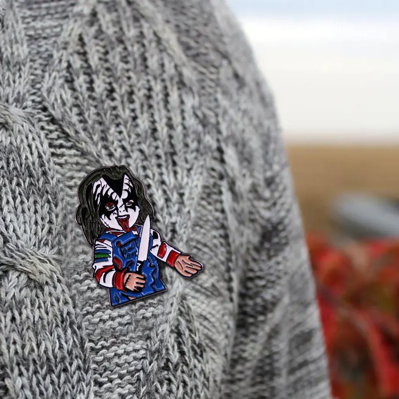 KISS Джин демон кукла Чаки с нож эмали штырь детская игра Хэллоуин Коллекционная значок из фильма ужасов и минеральной ваты Поклонники группы подарок