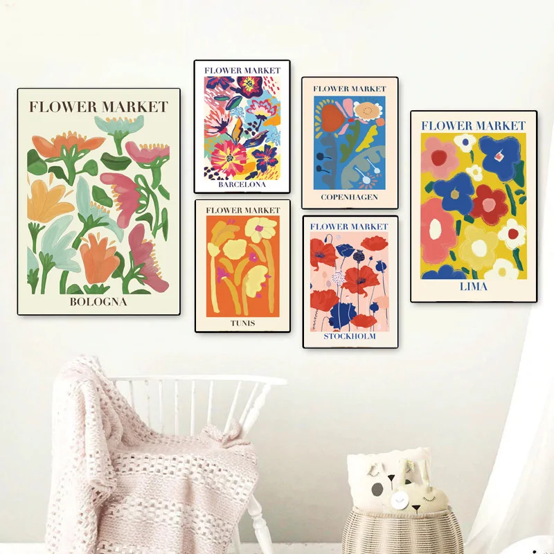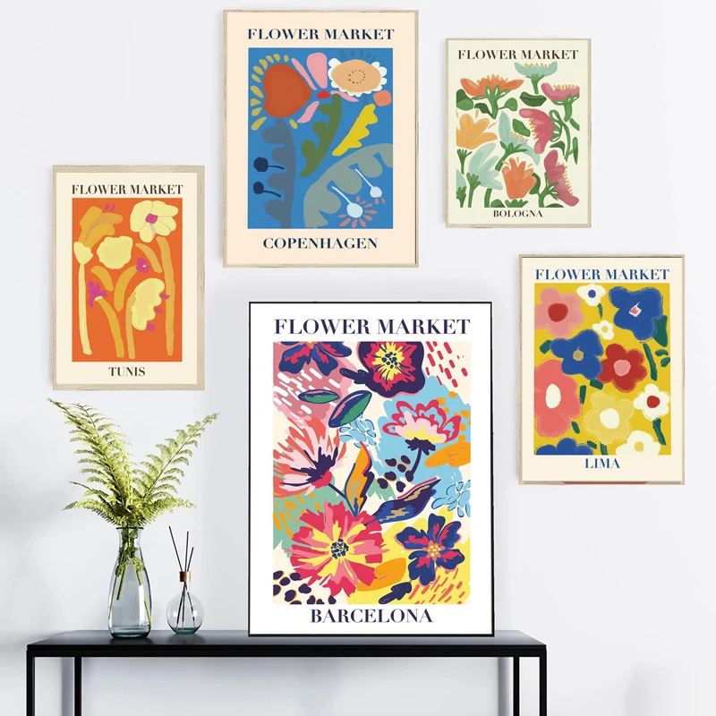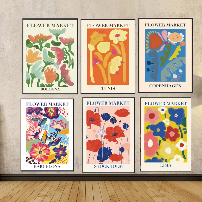 Цветочный рынок, ретро настенная Картина на холсте, Лондон, Токио, цветочные постеры, печать для скандинавской гостиной, домашний декор, картины
