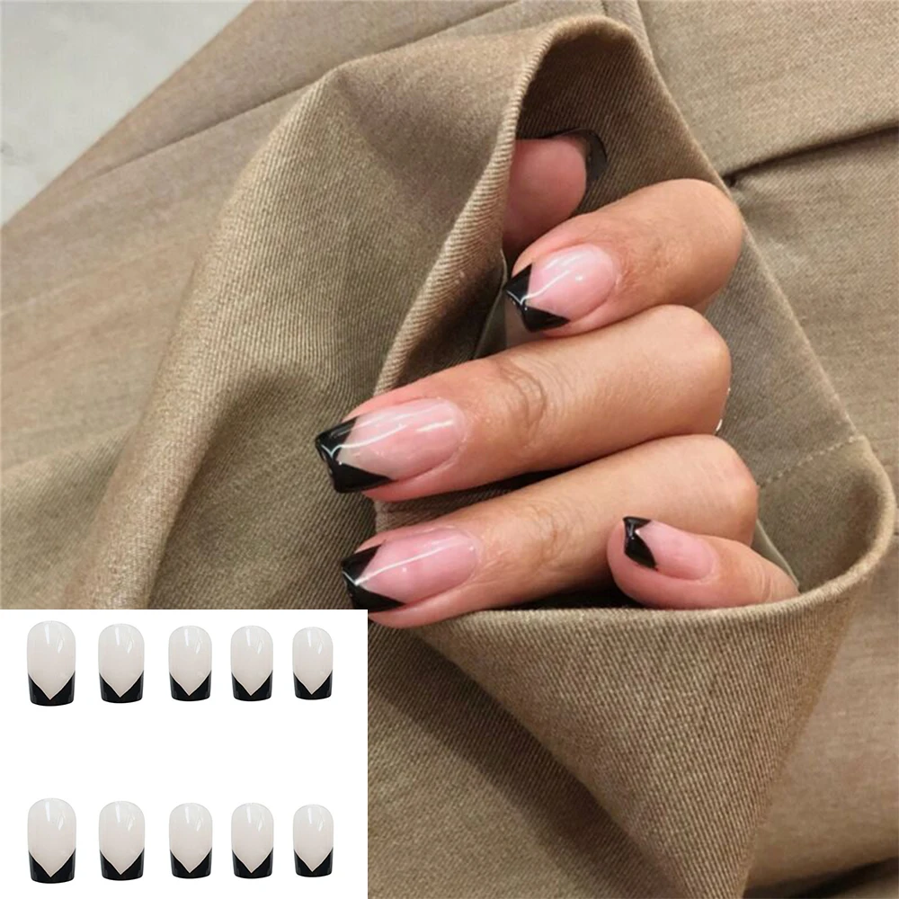 24 шт., съемные накладные ногти для французского маникюра с черной линией, накладные ногти с полным покрытием, накладные ногти с клеем, инструменты для маникюра