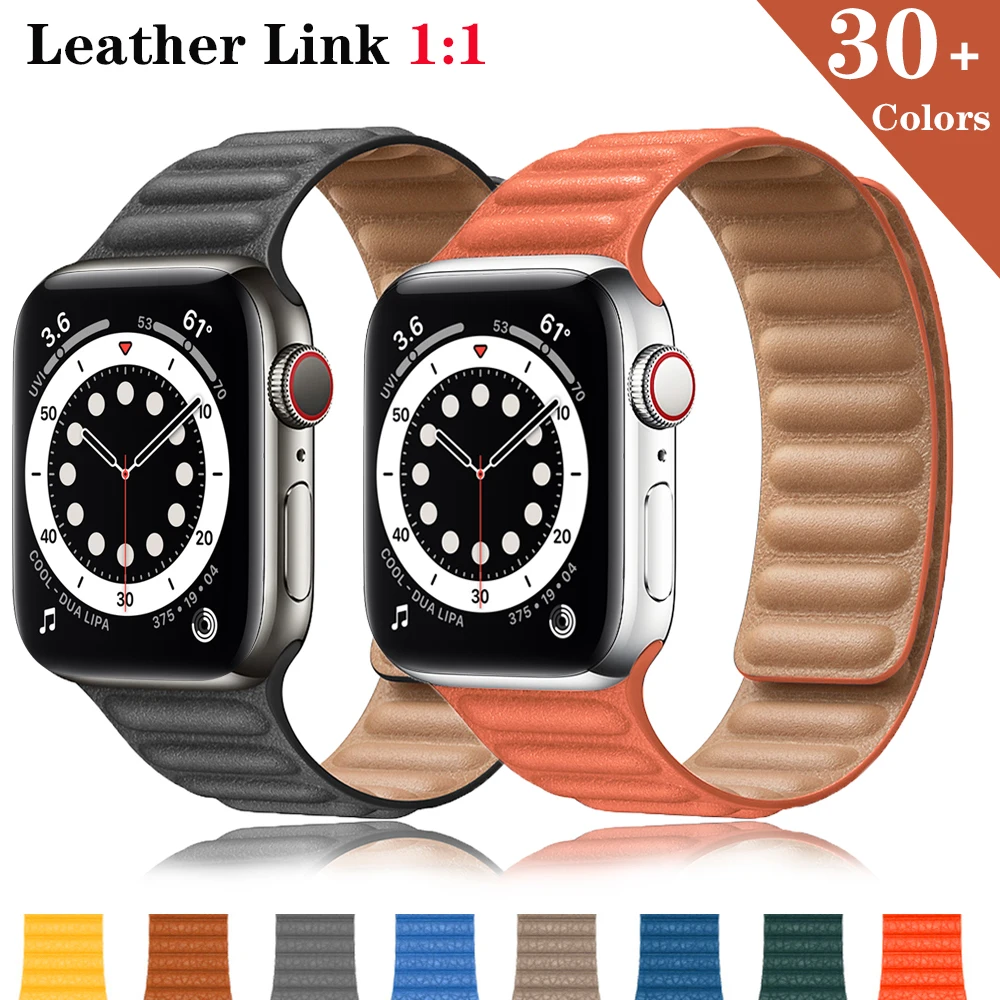 Ремешок магнитный для iWatch 7 6 SE 5 4 3 2 1, кожаный браслет для ...