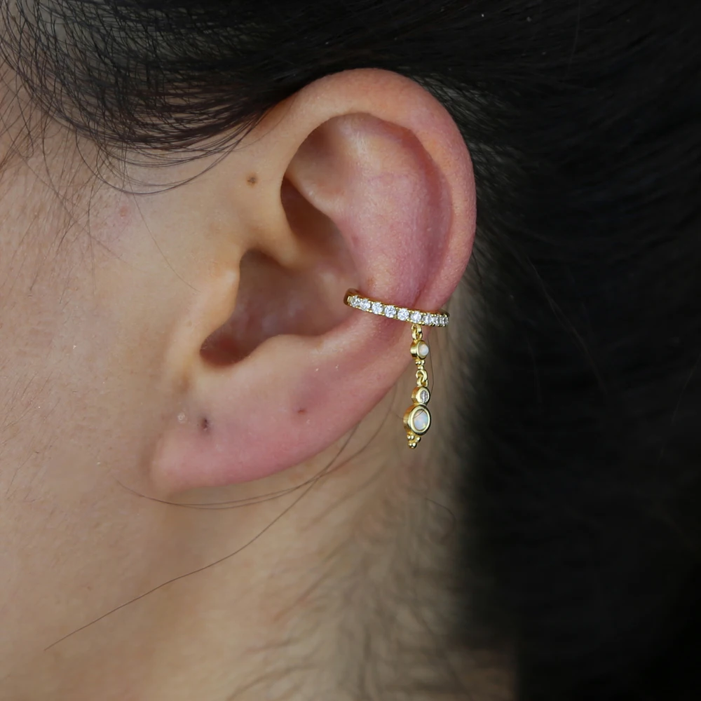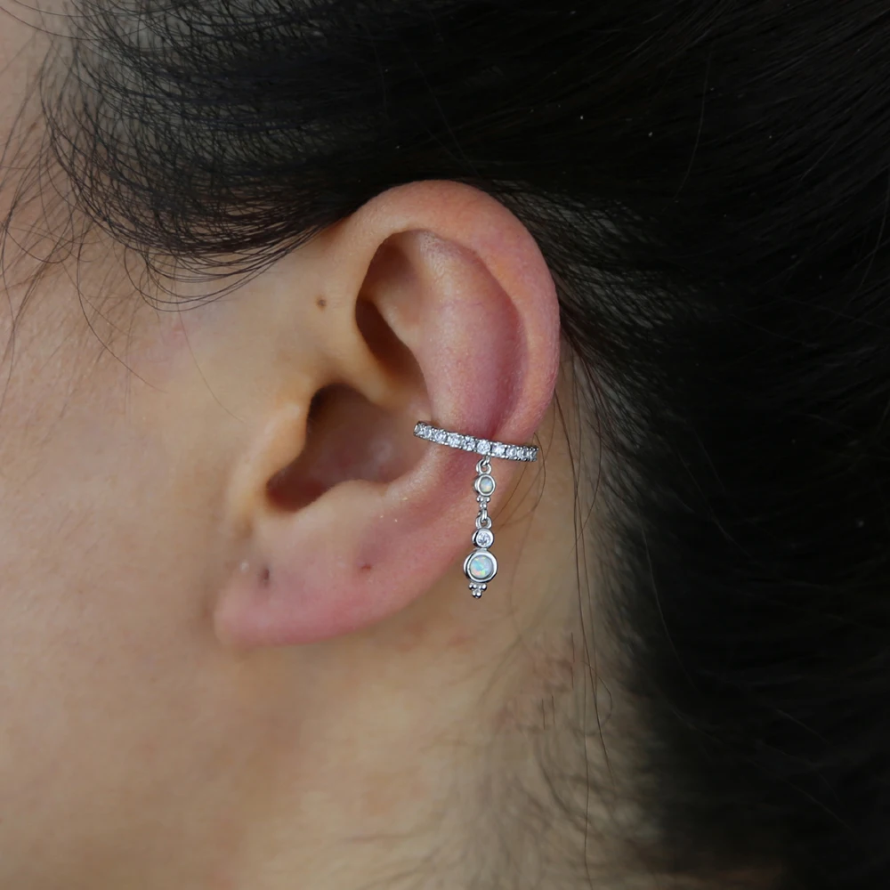 100% Стерлинговое Серебро 925 пробы ювелирные изделия паве Белый CZ огненный опал камень мода кисточка цепь висячие клипсы на ухо Серьги-Каффы