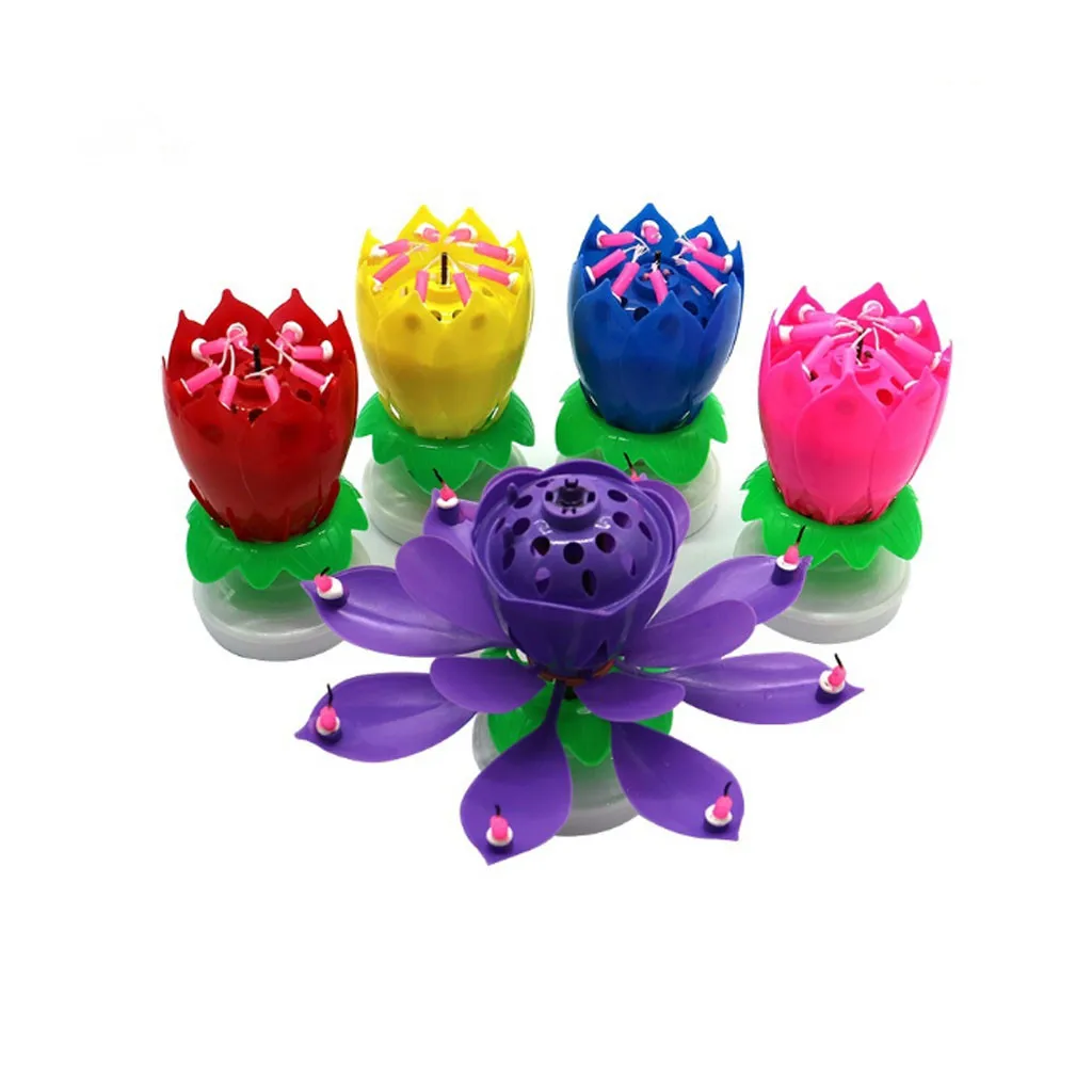 Вращающийся подсвечник с лотосом музыкальный мини-подсвечник в виде лепестков для вечеринки в честь Дня рождения подсвечник для торта