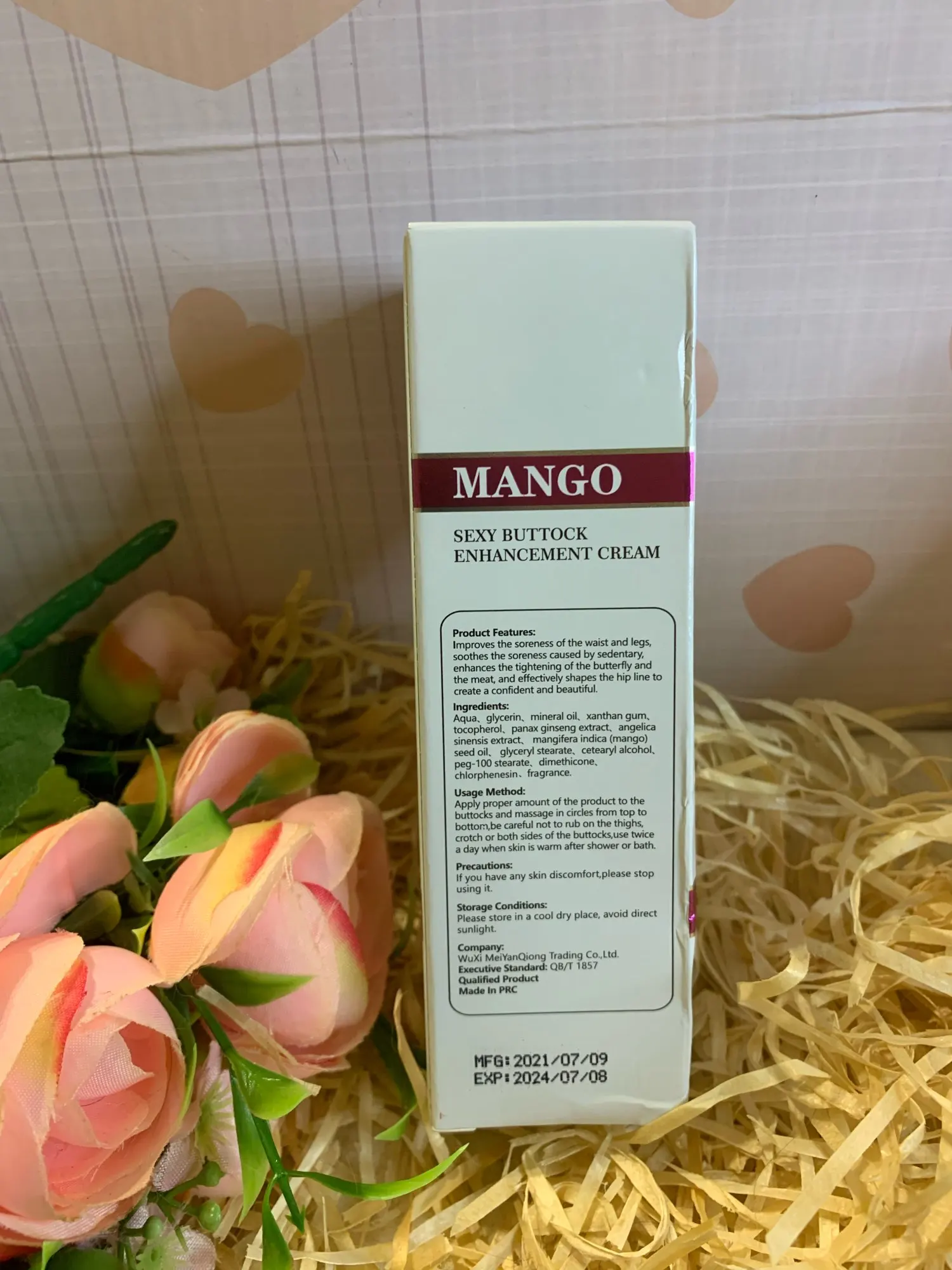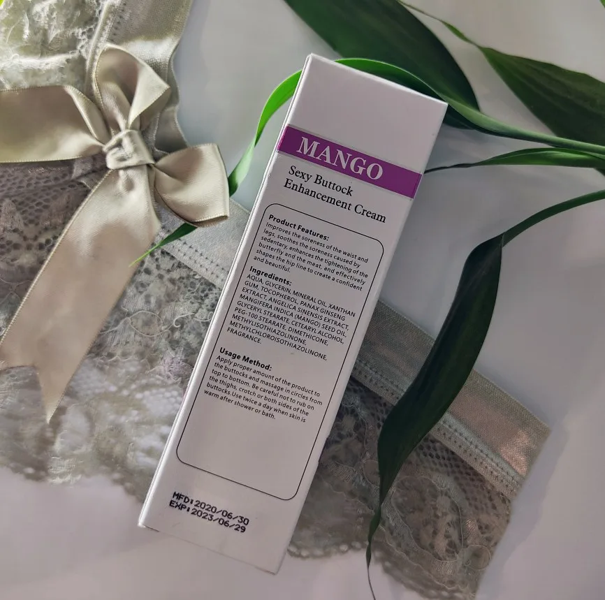 Крем для ягодиц с манго. Крем плотный, густой, но очень хорошо впитуется и легко растирается. Запах лёгкий, ненавясчивый. Наносить на чистую кожу 2 раза в день, после душа. наносить сверху вниз. Кожа после него увлажнённая, мягкая и бархатистая. Есть добавить массаж и правильное питание, то ваша попа скажет Вам большое спасибо.