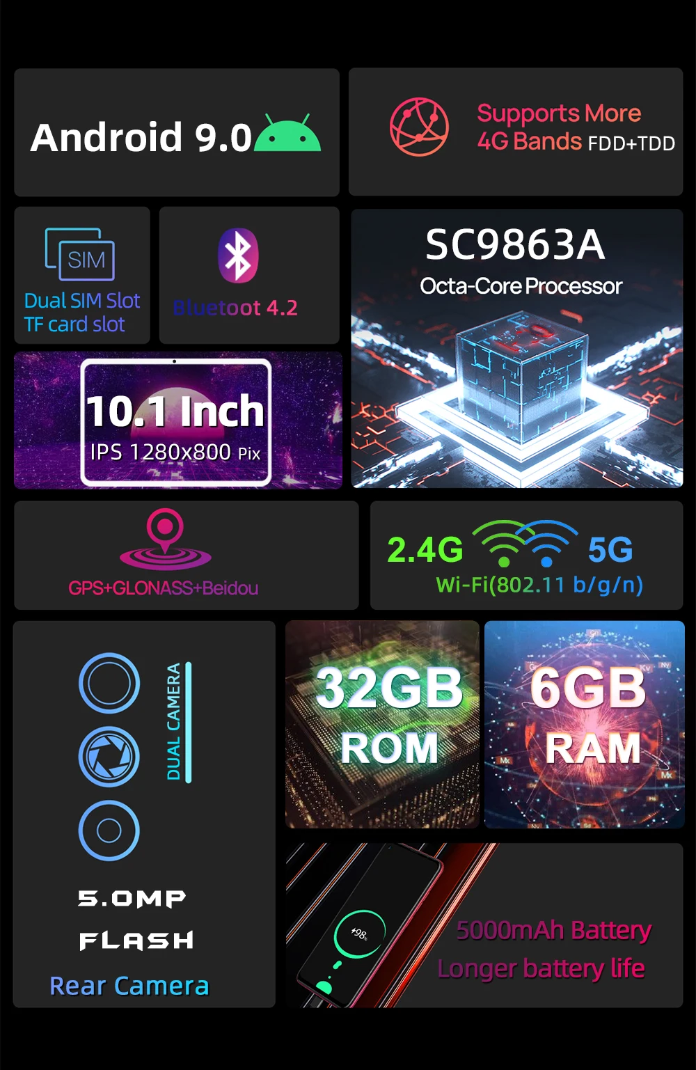 Cige оснащен памятью 6 ГБ и памятью 32 Гб. Он также имеет слот для карты microSD, что позволяет расширить память. Максимальная поддержка расширения 128 ГБ. Поддерживает больше приложений и оснащен восьмиядерным процессором S9863, что делает планшет более быстрым. Сильнее.
