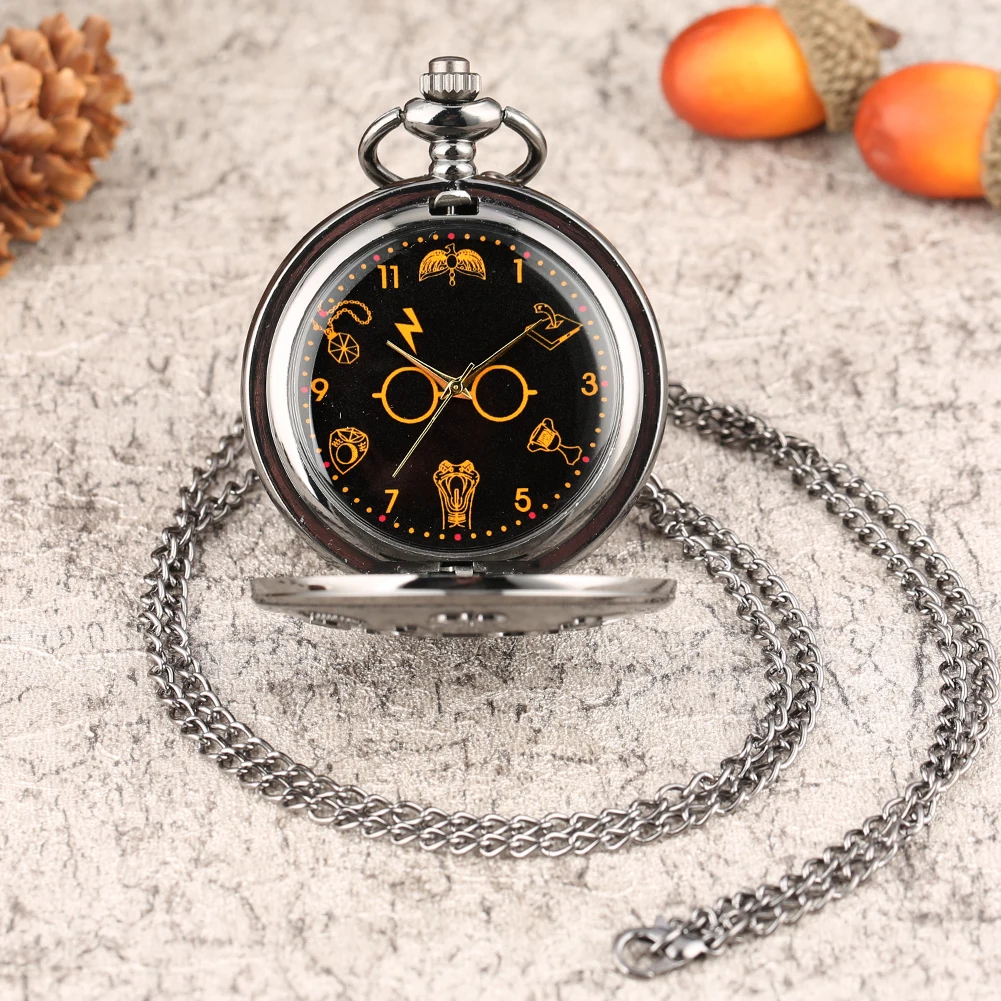 Фон в стиле ретро черного цветабронзасерый кварцевые карманные часы Lightning очки в стиле стимпанк, цепочка с подвеской часы для мужчин и женщин Подарки в античном стиле