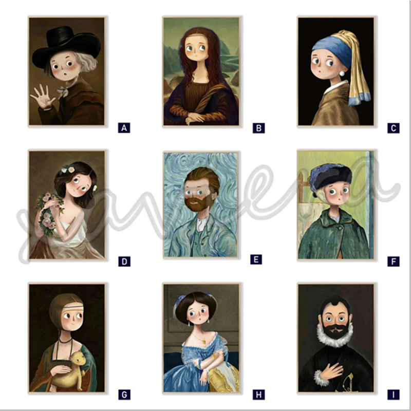 Алмазная 5D картина сделай сам, мультяшная милая девушка, полностью квадратнаякруглая вышивка крестиком Ван Гог, Мона Лиза, жемчужные серьги, вышивка для девушек