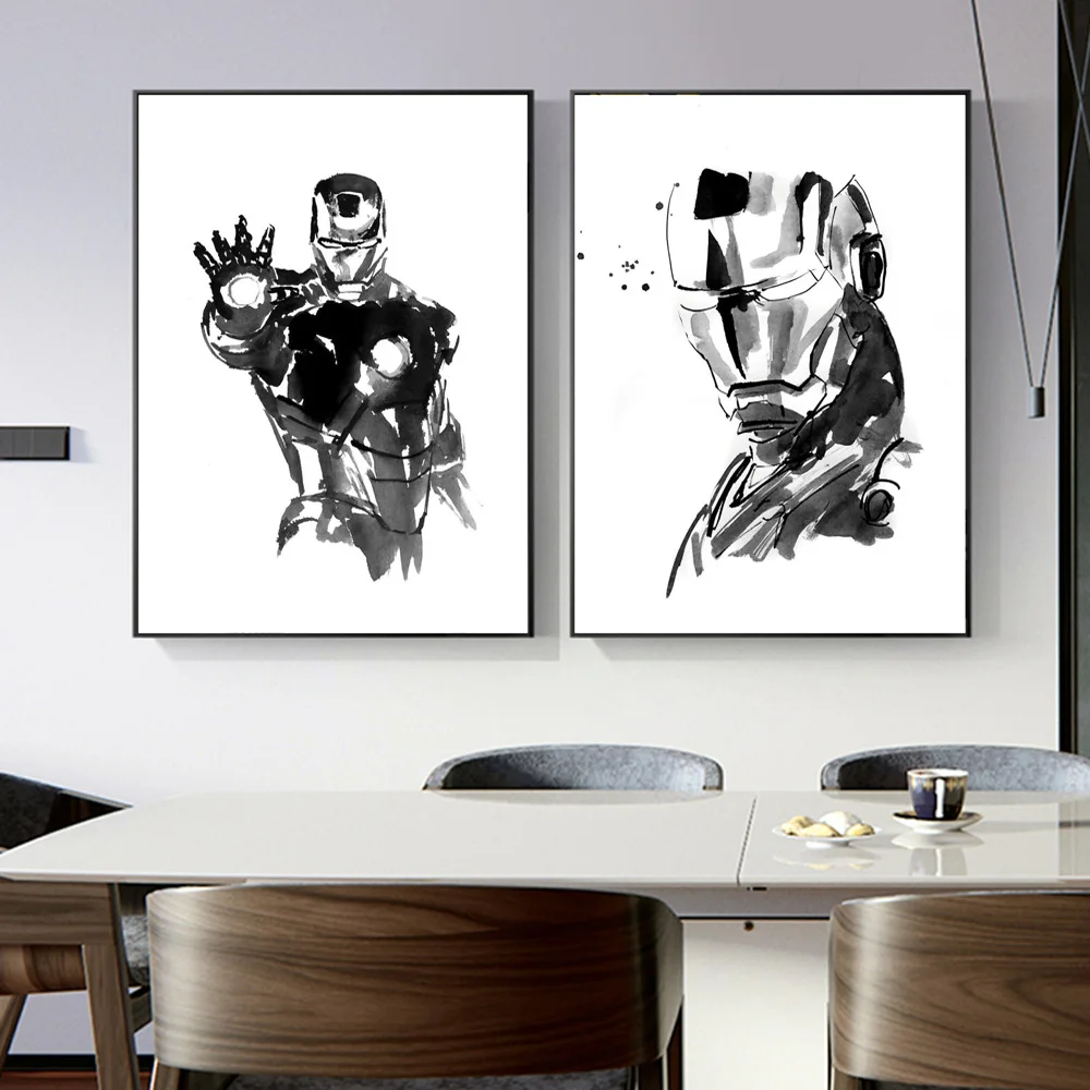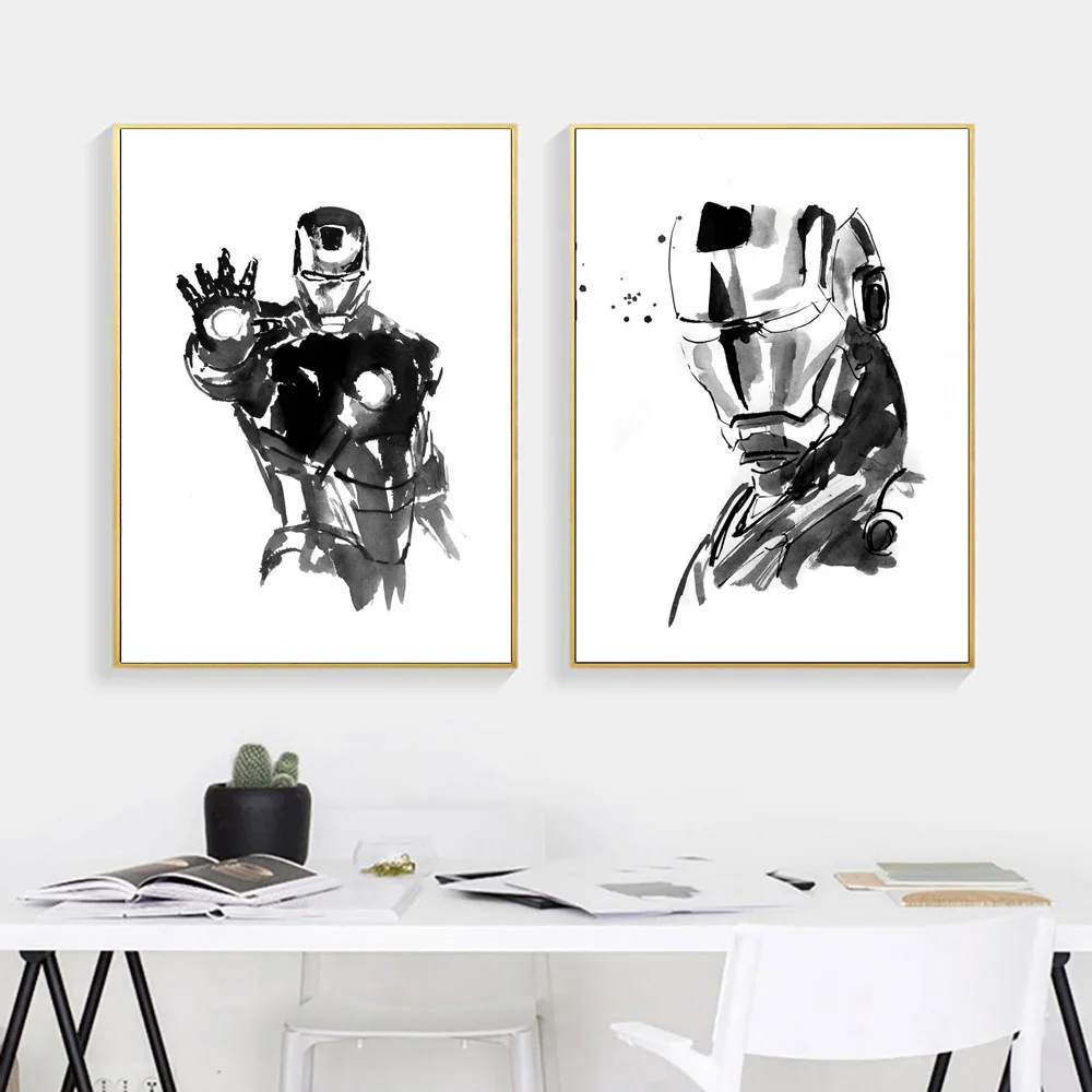Железный человек Человек-паук эскиз художественной живописи маслом на холсте стены Плакаты и принтами с героями комиксов Марвел, изображения супергероев для детей украшения комнаты