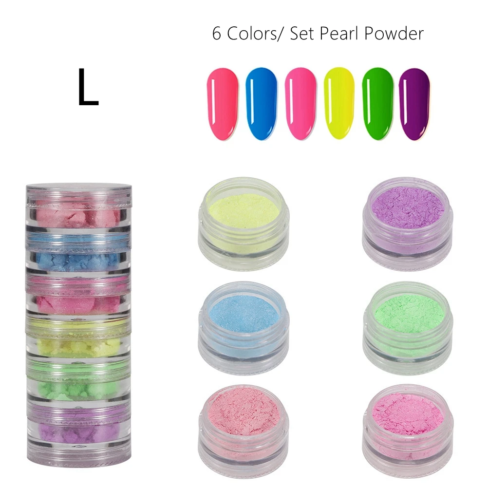 6 Цветкомплект высокий Глянец, пигмент для мануального татуажа ногтей Цветущий Флуоресцентный порошок блеском пыли Нейл-арт Декор порошок "сделай сам"