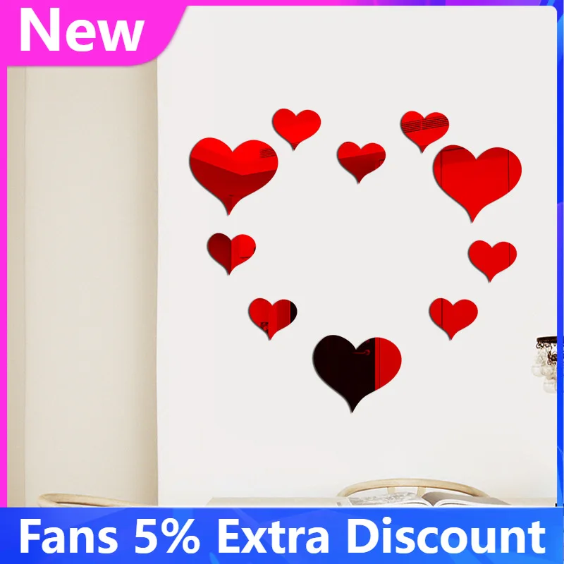 Модные зеркальные декоративные 3D наклейки в форме сердца, 10 шт.