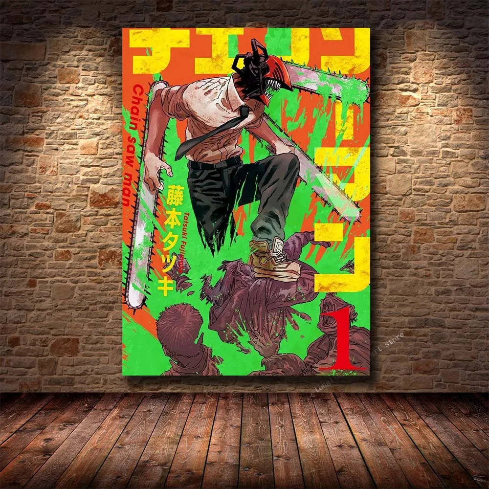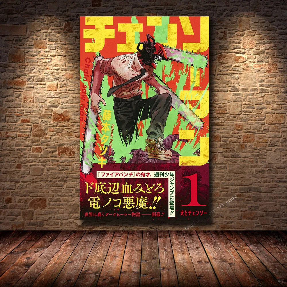 Классический постер с изображением человека из аниме бензопила, Картина на холсте для украшения гостиной, спальни, картина квадратный Декор
