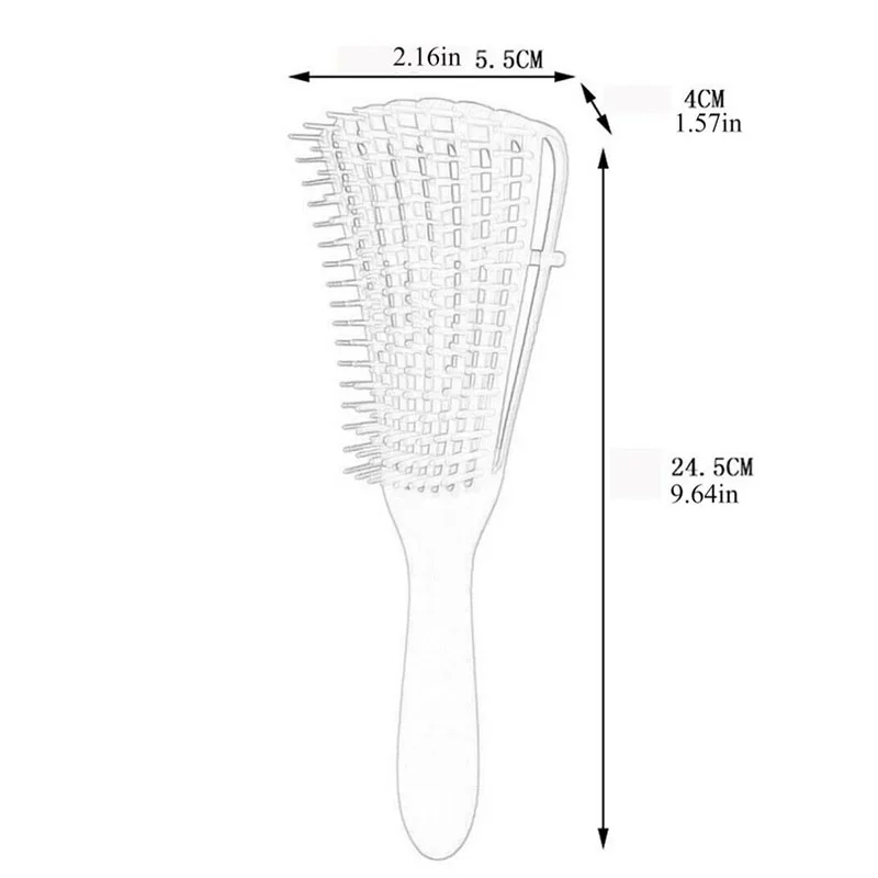 Особенности: Круглые зубцы могут массировать голову, способствуя росту волос. Зубцы с восьмикогтями расчесываются, восстанавливаются, удобны для кожи головы. Гребень изогнутой формы облегает кожу головы, делая ее более комфортной. Полая расческа, более гибкая для быстрого высыхания и укладки волос. Нескользящий дизайн позволяет удобно держать его в руке. Характеристики: Материал ручки: резиновый пластик Зубья: резиновая игла Размер: 245X50X40 мм/9,65X1,97X1,57 дюйма