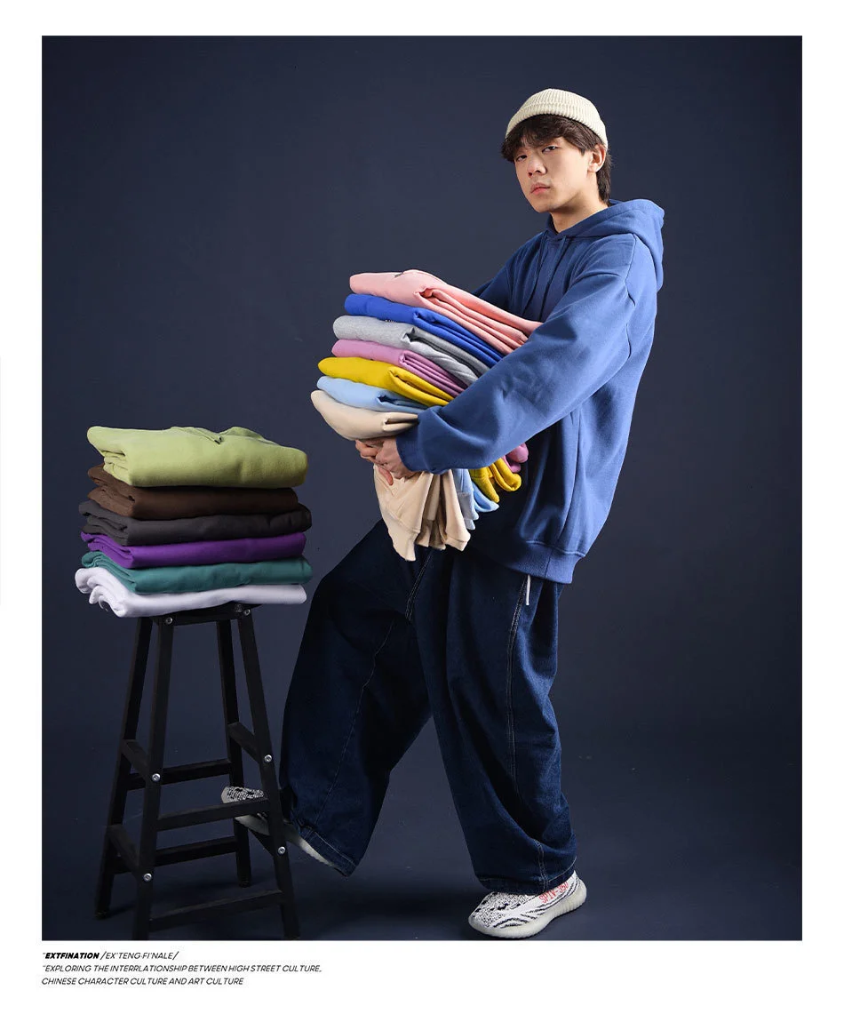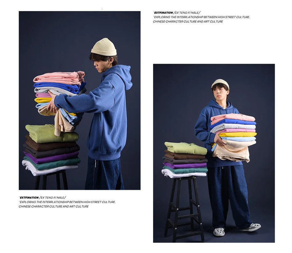 Толстовки Extfine мужские однотонные на заказ, 12 цветов, корейские женские пуловеры с капюшоном, хлопковые толстые теплые толстовки большого размера для женщин