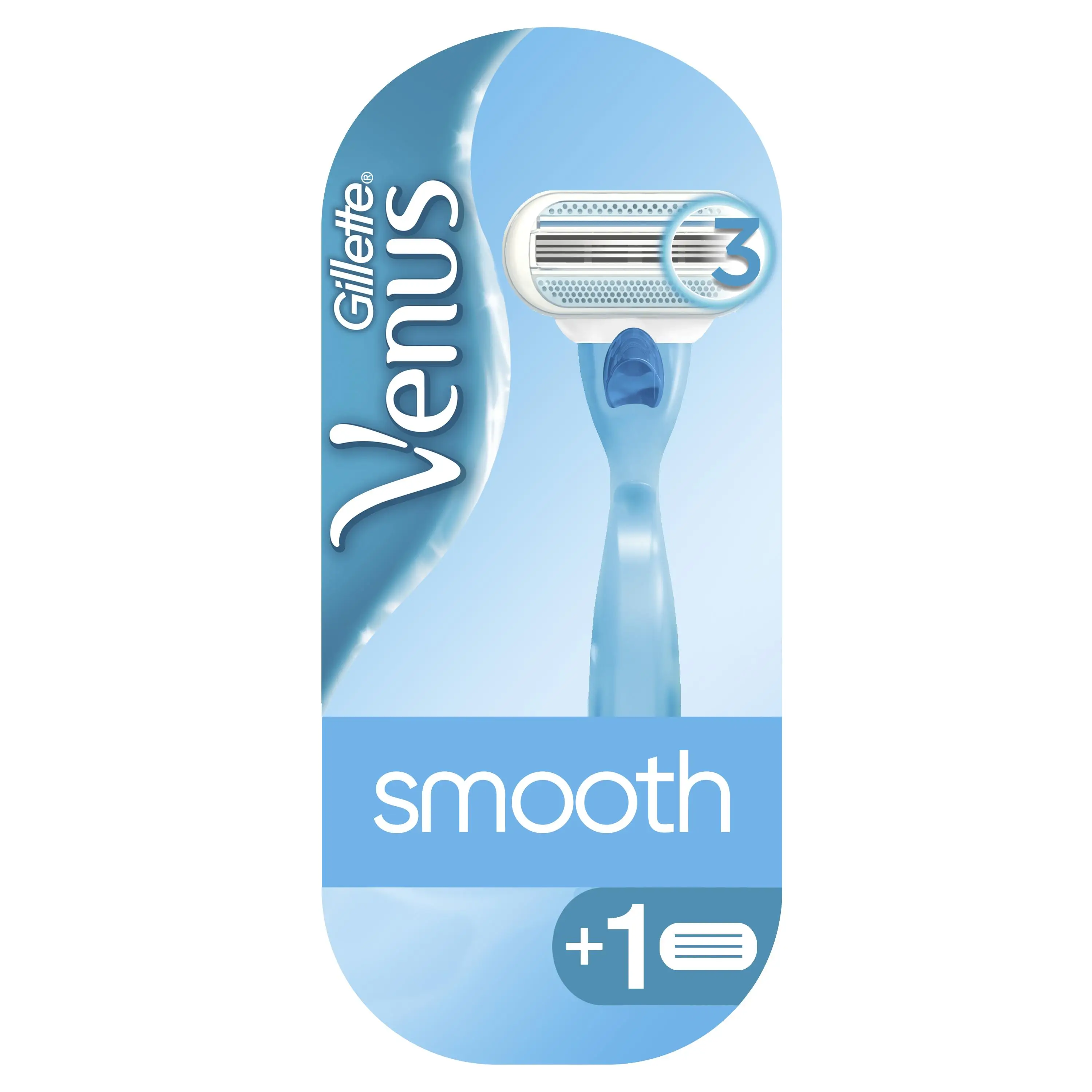 Gillette Venus Smooth — это первая бритва с тремя лезвиями, созданная специально для женщин. Благодаря трем повторяющим изгибы тела лезвиям и разглаживающим кожу защитным подушечкам вокруг лезвий бритва обеспечивают гладкое и чистое бритье одним движением. Голубая полоска-индикатор меняет цвет, сообщая о том, когда пора менять лезвия Venus для обеспечения оптимального качества бритья.