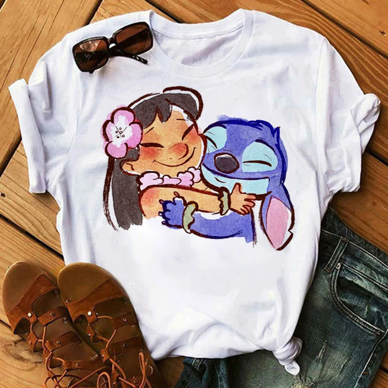 Футболка мужская с милым рисунком Диснея, смешная футболка в стиле Лило, Ститч, Охана, топ унисекс в стиле аниме, стиль Харадзюку, гранж