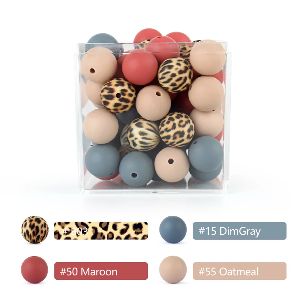 10 шт., силиконовые бусины с леопардовым принтом, 12 мм, 15 мм, 14 мм