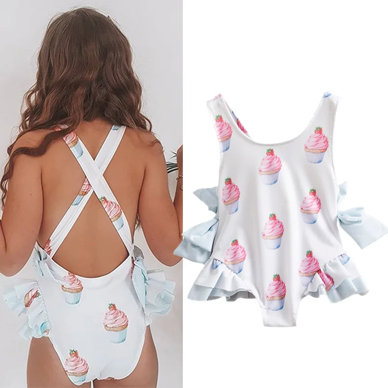 Купальник для маленьких девочек с открытой спиной, детский слитный купальник с принтом, бикини, купальный костюм, детская пляжная одежда