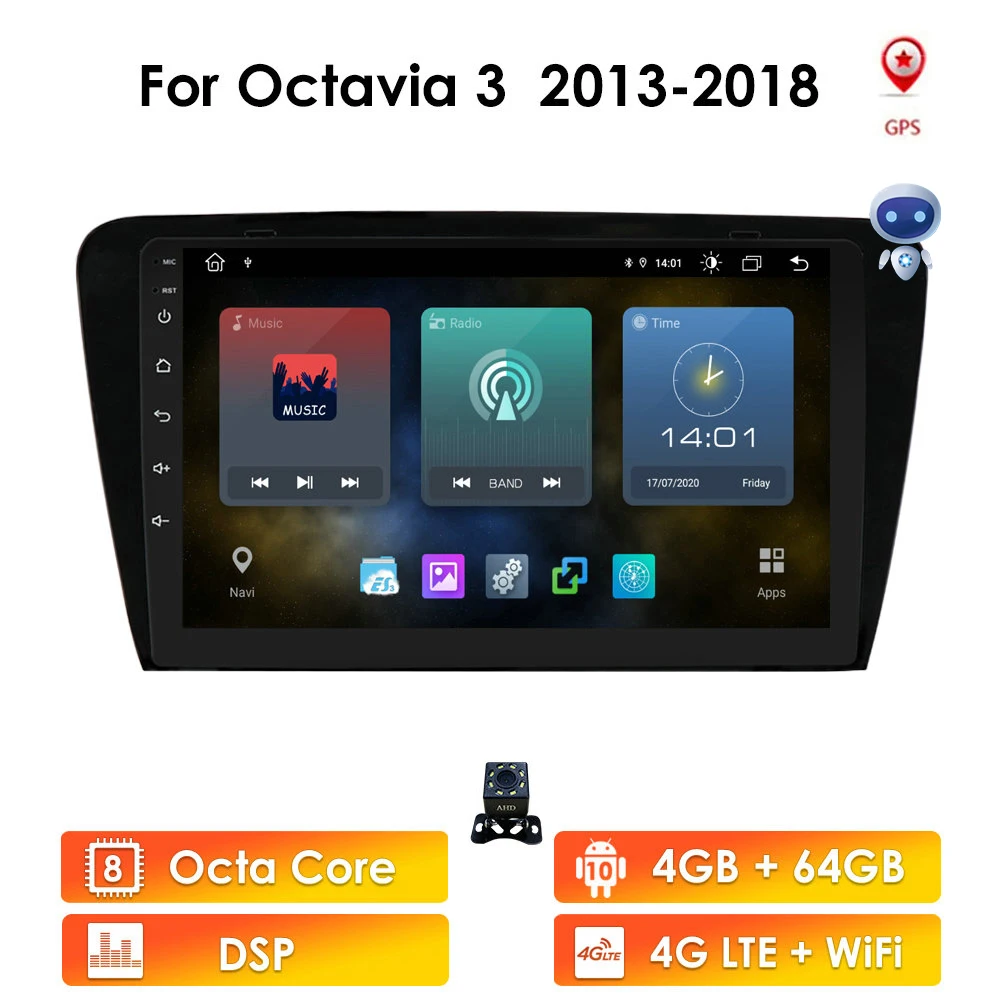 Автомобильное радио, мультимедийный видеоплеер, GPS-навигатор, Android, 2 din, стерео, 4G, для Skoda Octavia 3 A7 2013 - 2018