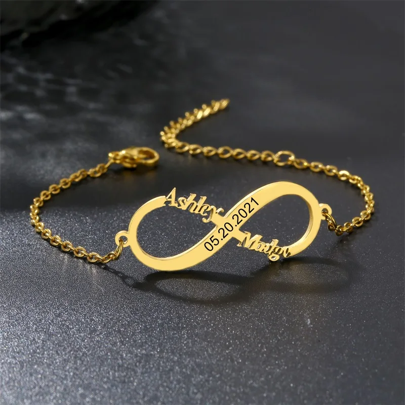 Пользовательское имя бесконечное браслеты для женщин из нержавеющей стали, Индивидуальные персонализированные модные гравируемая буква браслет ювелирные изделия ручной работы
