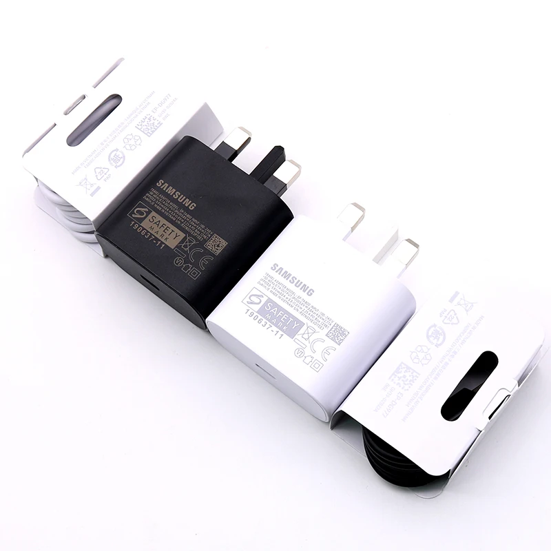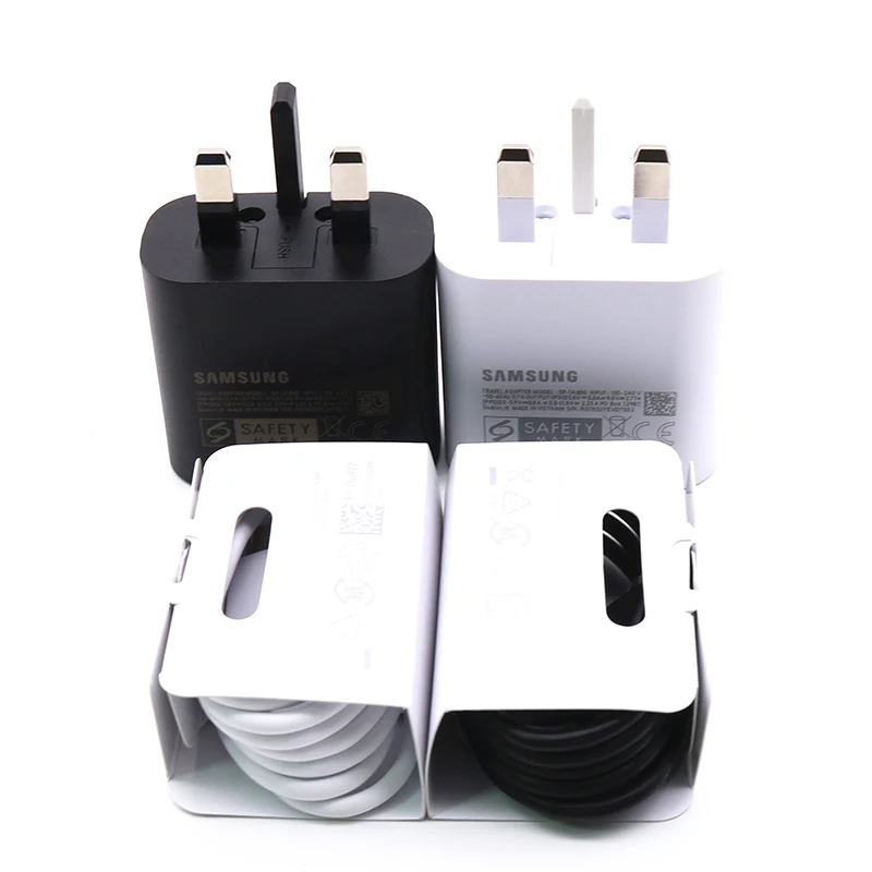 Оригинальный адаптер для быстрой зарядки Samsung 25 Вт, штепсельная вилка стандарта Великобритании, быстрый кабель типа C для Samsung Note 10 20 S20 + Ultra S10 A50 A90 5GОсобенности:-Супер быстрое зарядное устройство Samsung Galaxy Note 10-Максимальная выходная мощность: 25 Вт-- Штепсельная вилка стандарта Великобритании-- Кабель USB Type-C-Type-C-- С коробкой или без коробки-Черный/белый