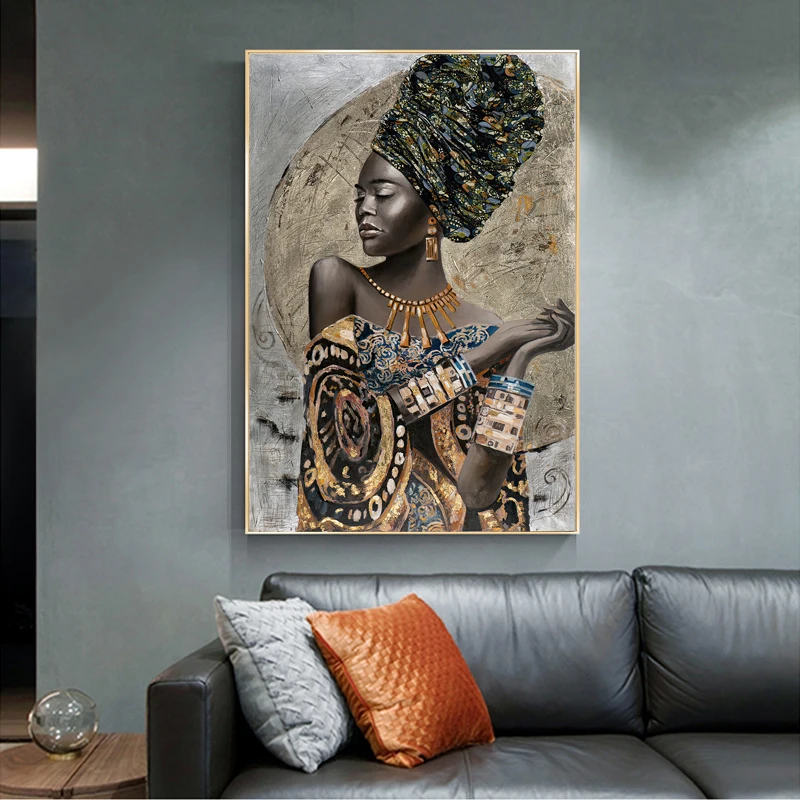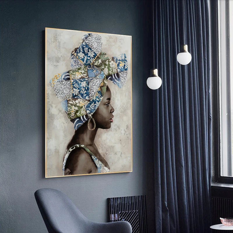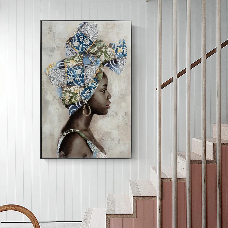 Африканская черная Женская картина маслом на холсте плакаты и принты абстрактная картина на стену для девушек Ретро картины для гостиной домашний декор