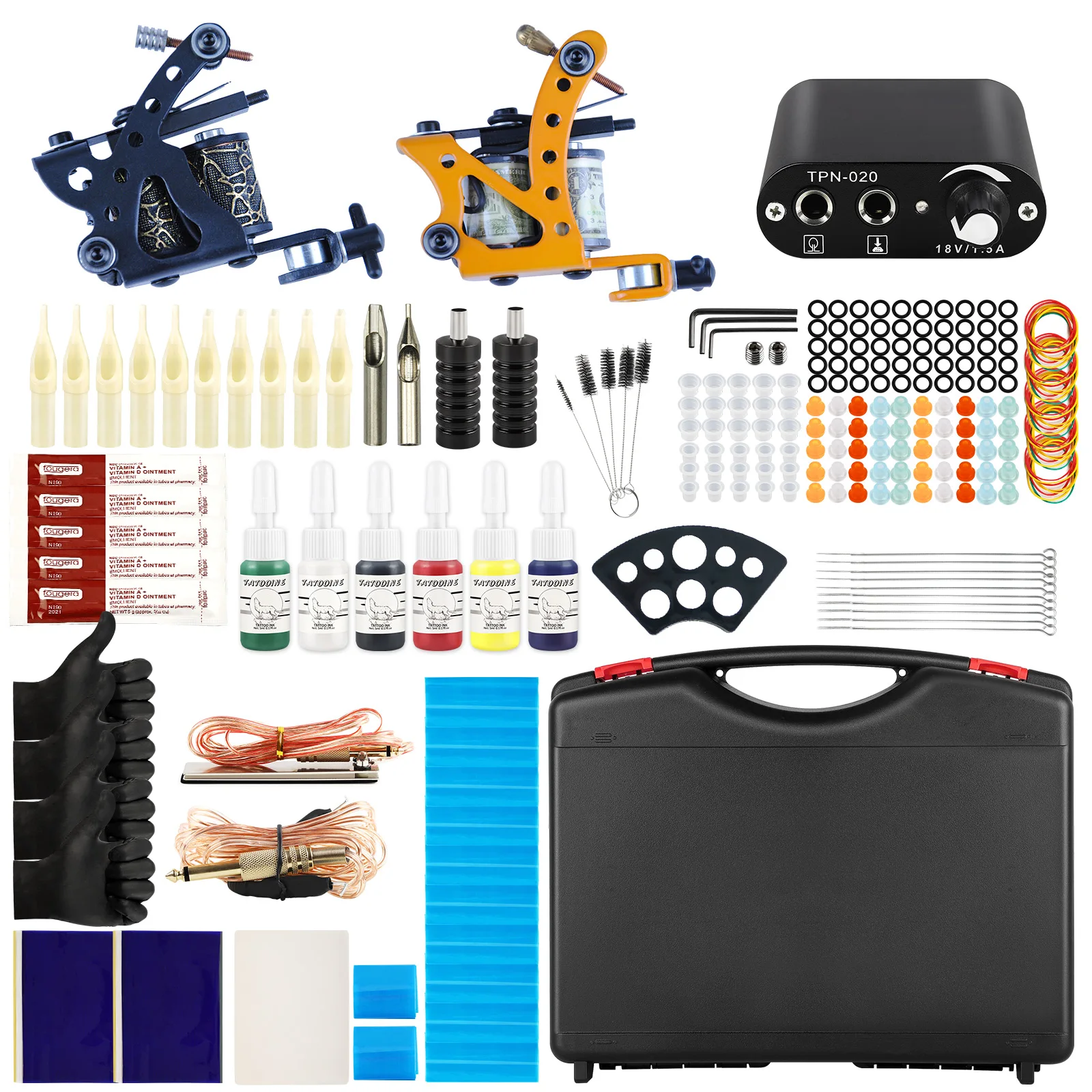 Мини ЖК-дисплей Dual Power Supplyx1Металлическая тату машина для Liningx1Доллар тату машина для Shadingx110 шт иглы татуировки (5RL, 5M1) x1No.3 круглый Needlex5№7 Cross Needlex510 шт одноразовые иглы (5R, 5F)x13Rt синяя игла татуировки Tipx57 футов синие иглы татуировки наконечник x5Белая Татуировка тренировочная Кожа 1xПедализатор для ног x1Бумага для переноса татуировок x1Зажим Cordx16 шт. аксессуаров для тату x1Синяя алюминиевая ручка татуировки x1Красная алюминиевая ручка татуировки x15Rt одноразовые иглы татуировки с Gripx2Одноразовые Glovesx414 шт тату Inksx1Коробка для тату x1