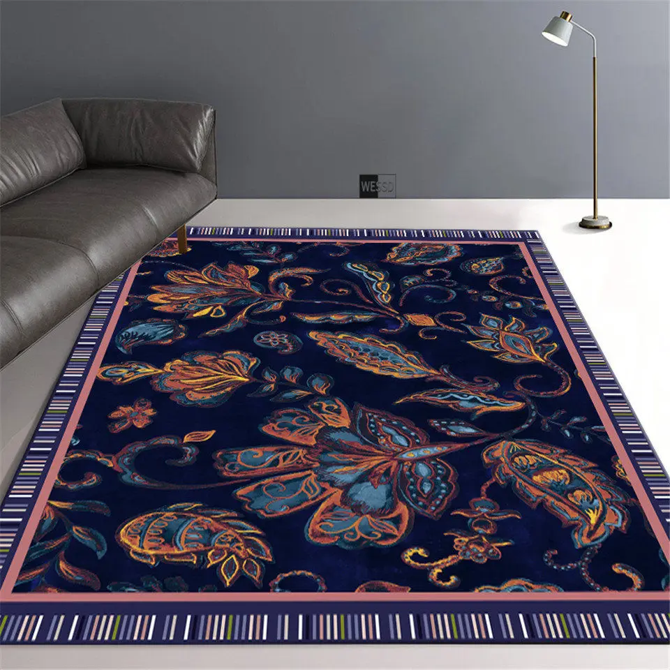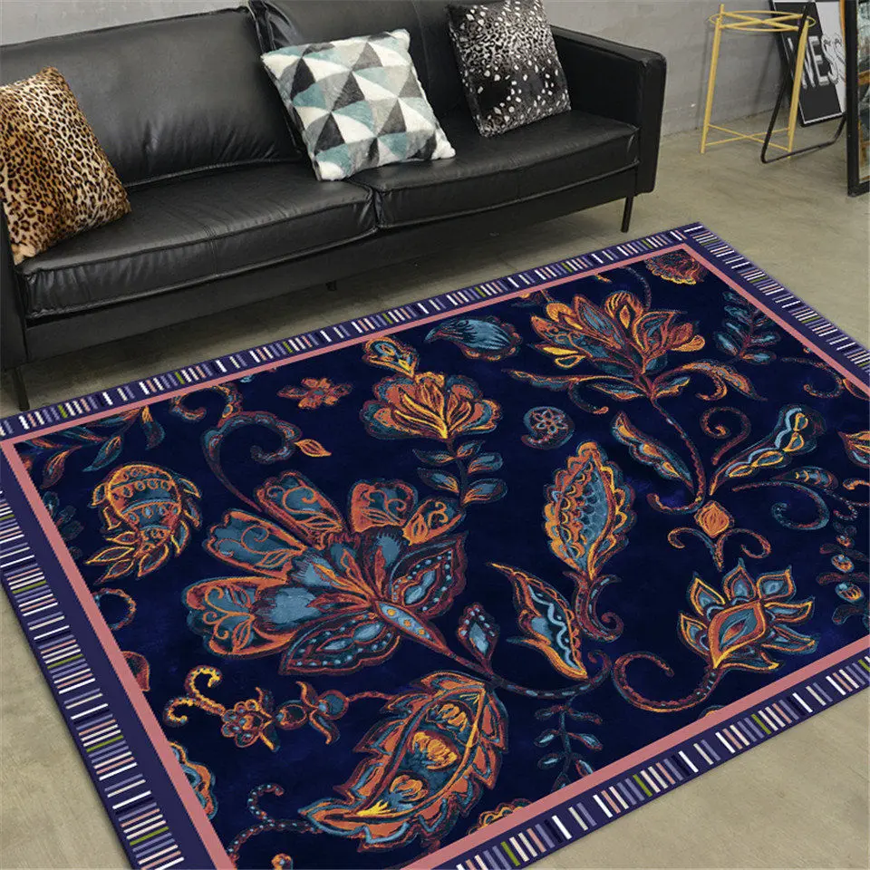 Ретро этнический темно-синий цветочный ковер, ковер для стула, коврики в богемном стиле для прихожей, напольный коврик, фланелевый мягкий ковер, прикроватный коврик для спальни, моющийся