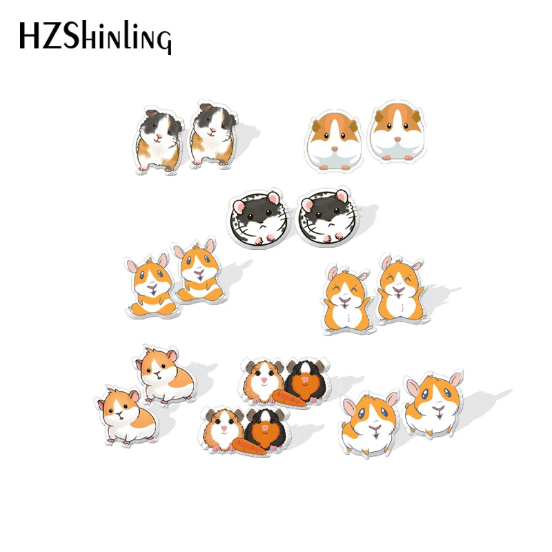 2021 Мультфильм морская свинка тепла акриловые серьги гвоздики смолы эпоксидной смолы модные ювелирные изделия
