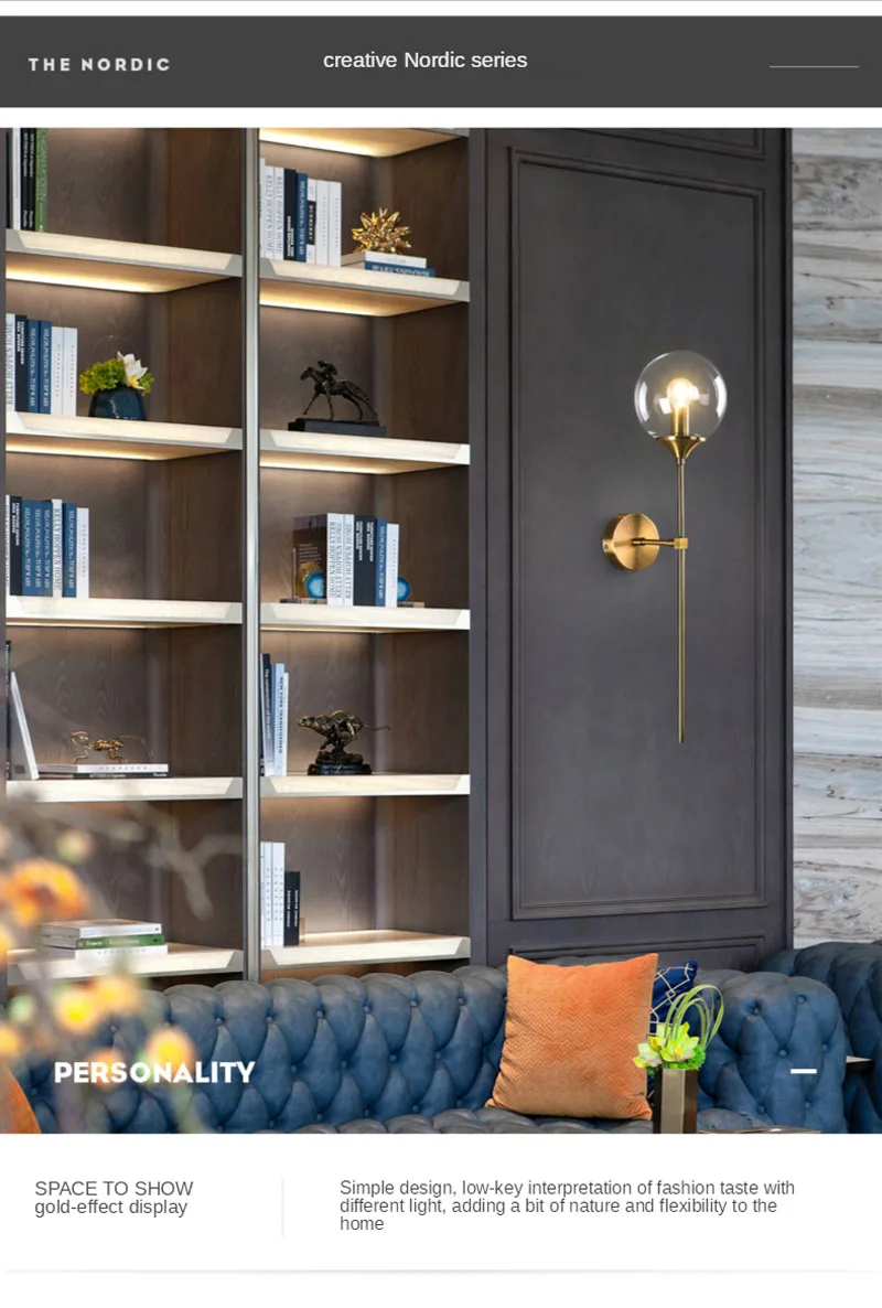 Современный стеклянный настенный светильник, золотой круглый светильник, домашний прикроватный, для гостиной, для украшения кухни
