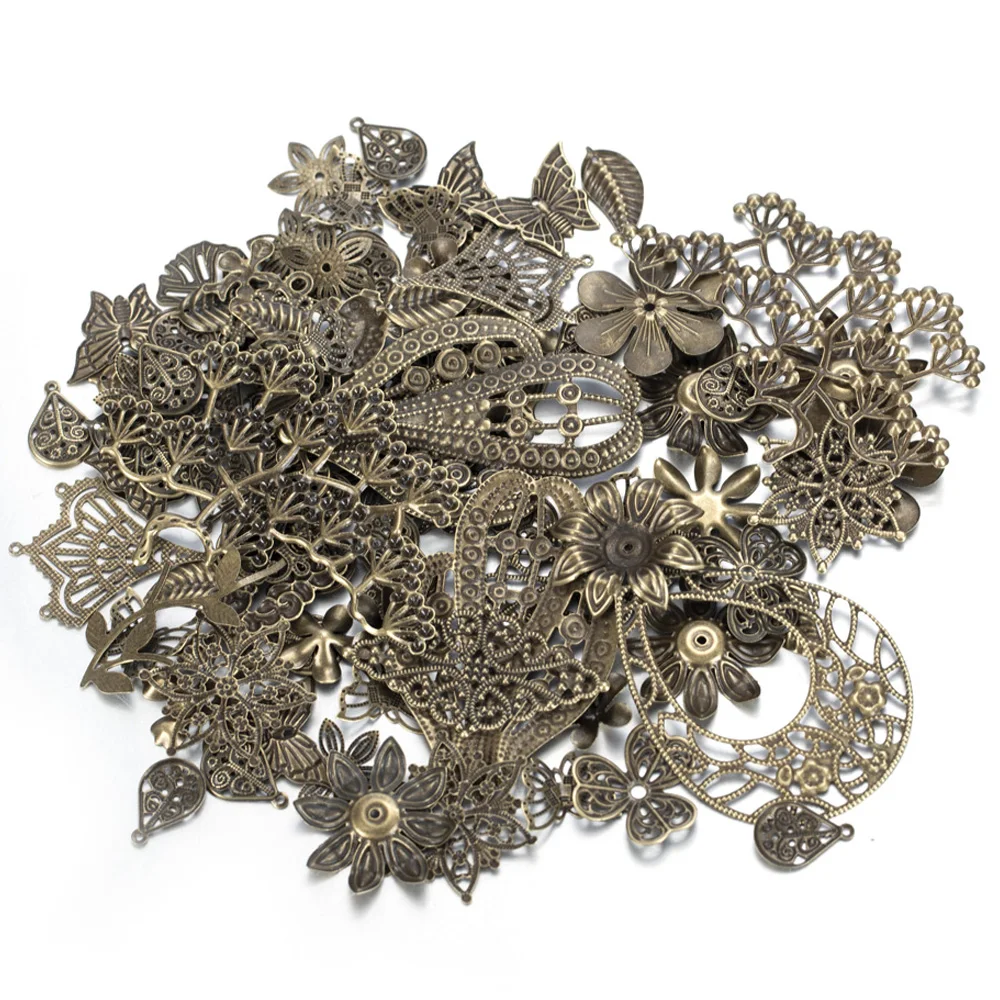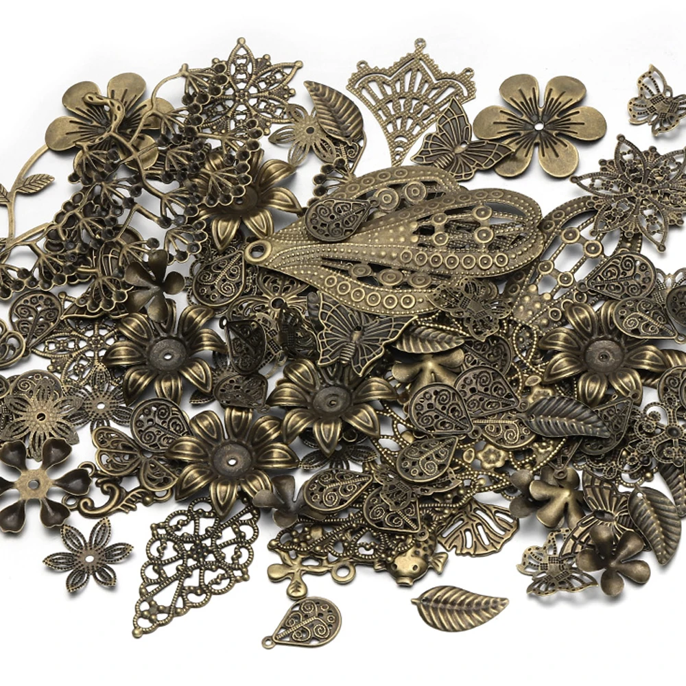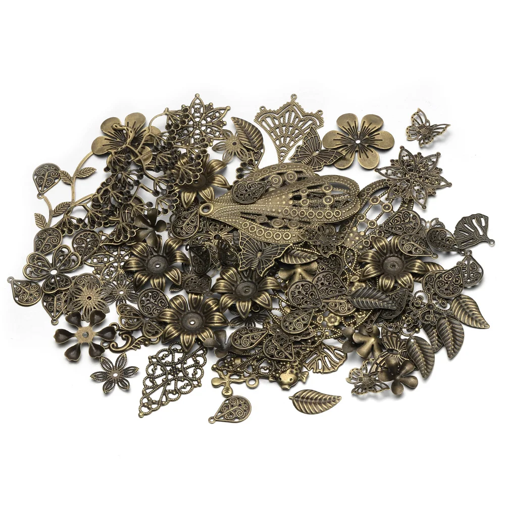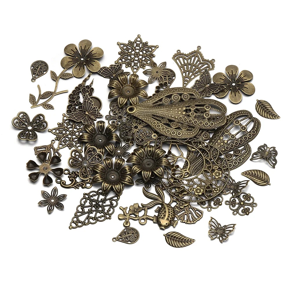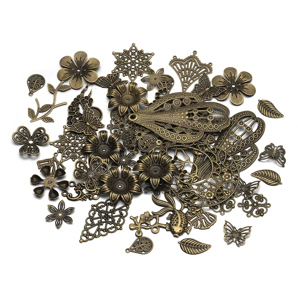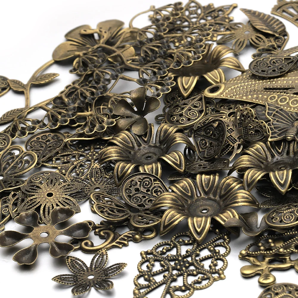 Античная бронзовая Смешанная металлическая филигранная оболочка в форме цветка, подвески для рукоделия, подарок, сделай сам, оптовая продажа, компоненты для изготовления ювелирных изделий