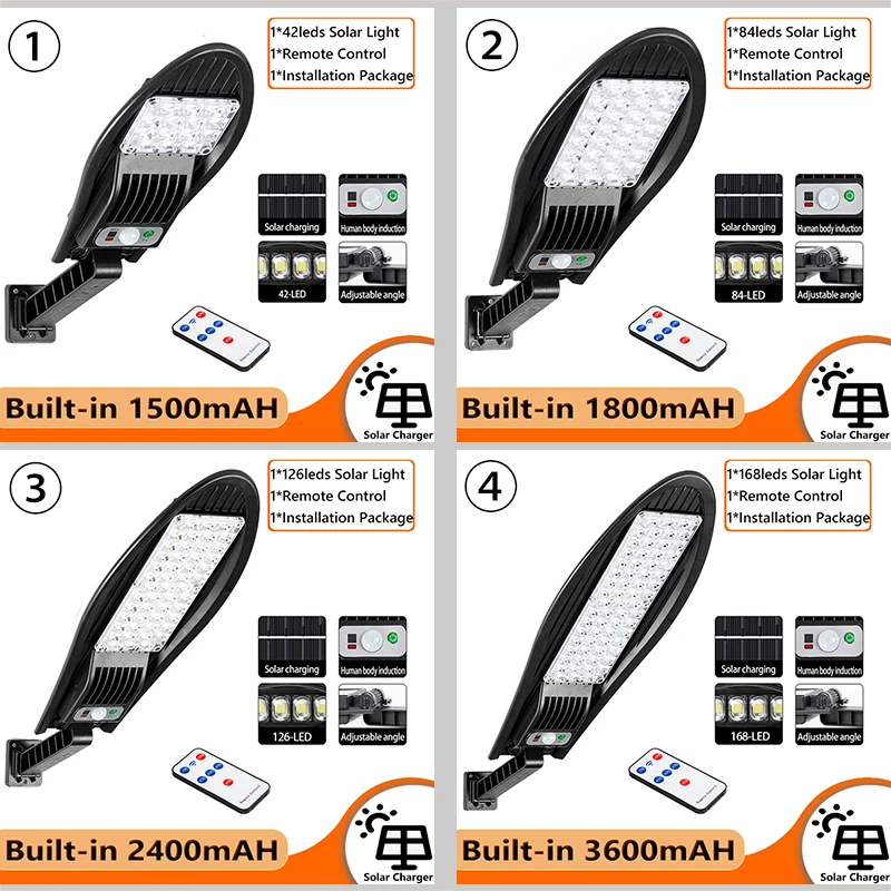 Уличный светильник, супер яркий водонепроницаемый с питанием от солнечной батареи и датчиком движения, 3600 мАч, 3 режима