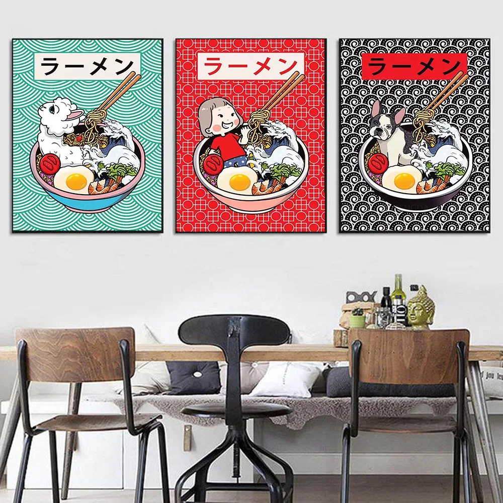 Японская культура эстетика рамен суши животные азиатская еда плакат Холст Аниме искусство для дома украшение для спальни гостиной