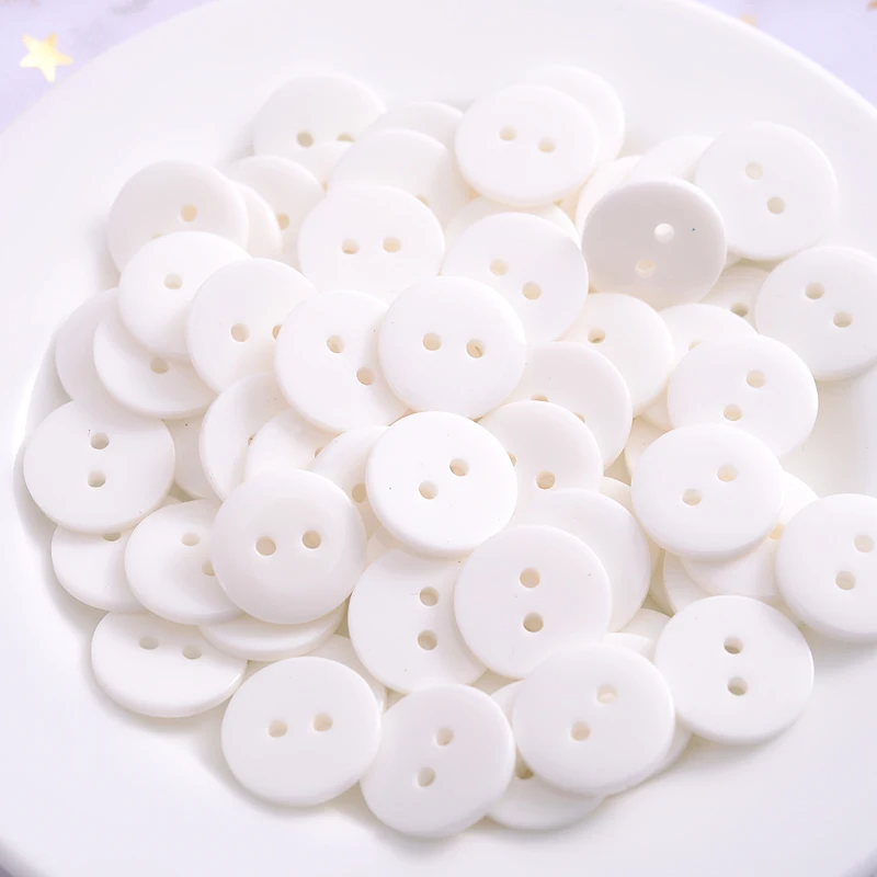 Круглые пуговицы из смолы молочного и белого цвета с 2 отверстиями, Симпатичные Модные пуговицы для одежды ручной работы, аксессуары для скрапбукинга, 1115 мм, 100 шт.