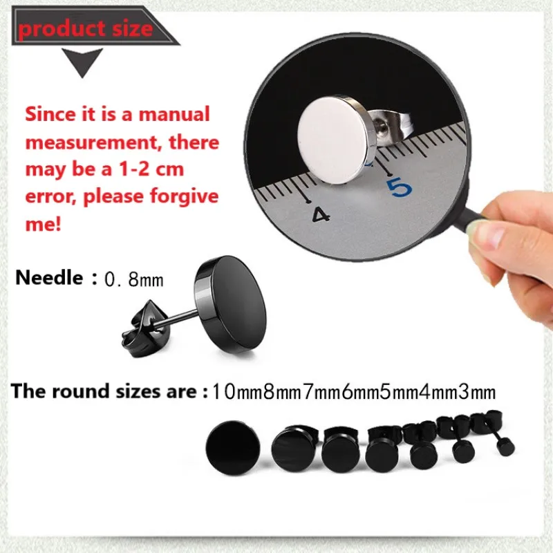 Классические черныестальные круглые серьги-гвоздики из нержавеющей ...